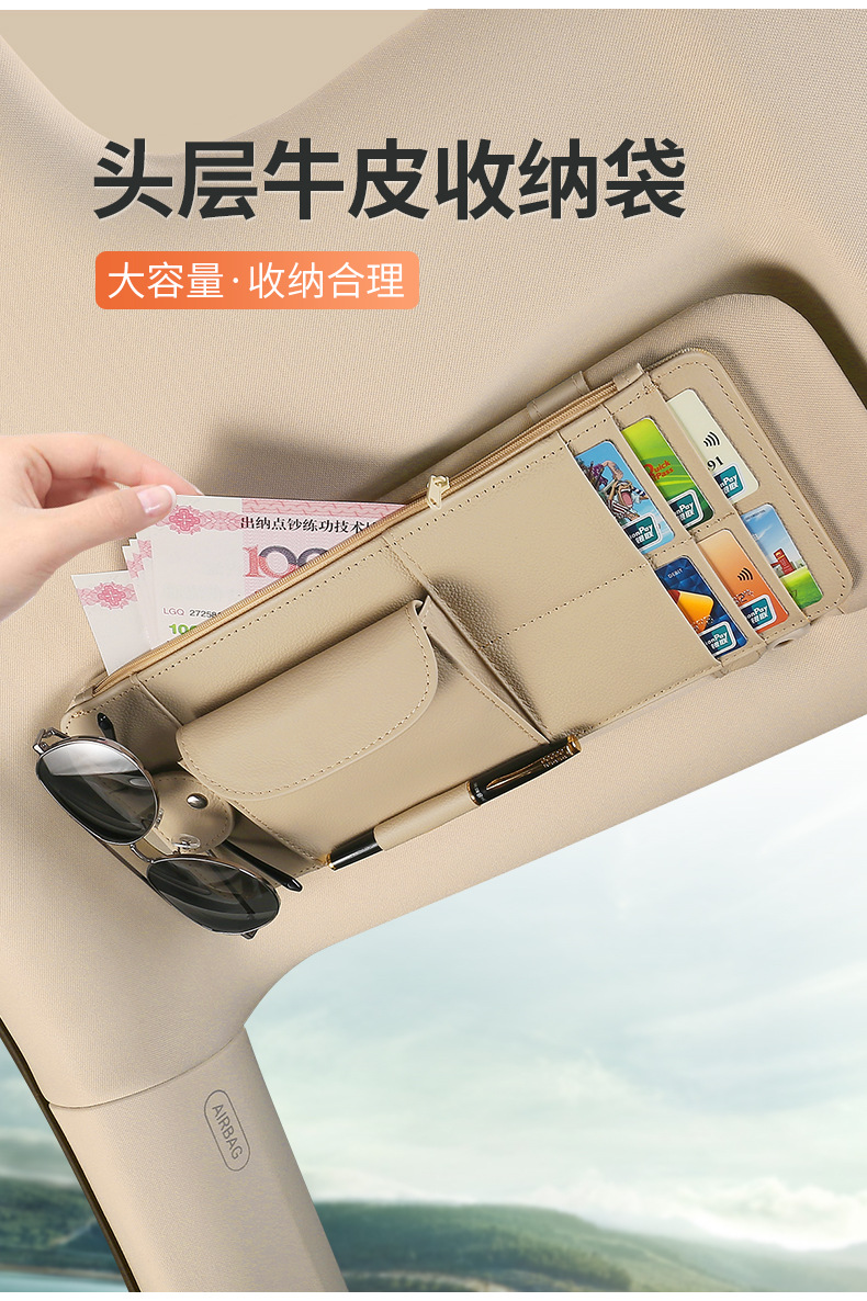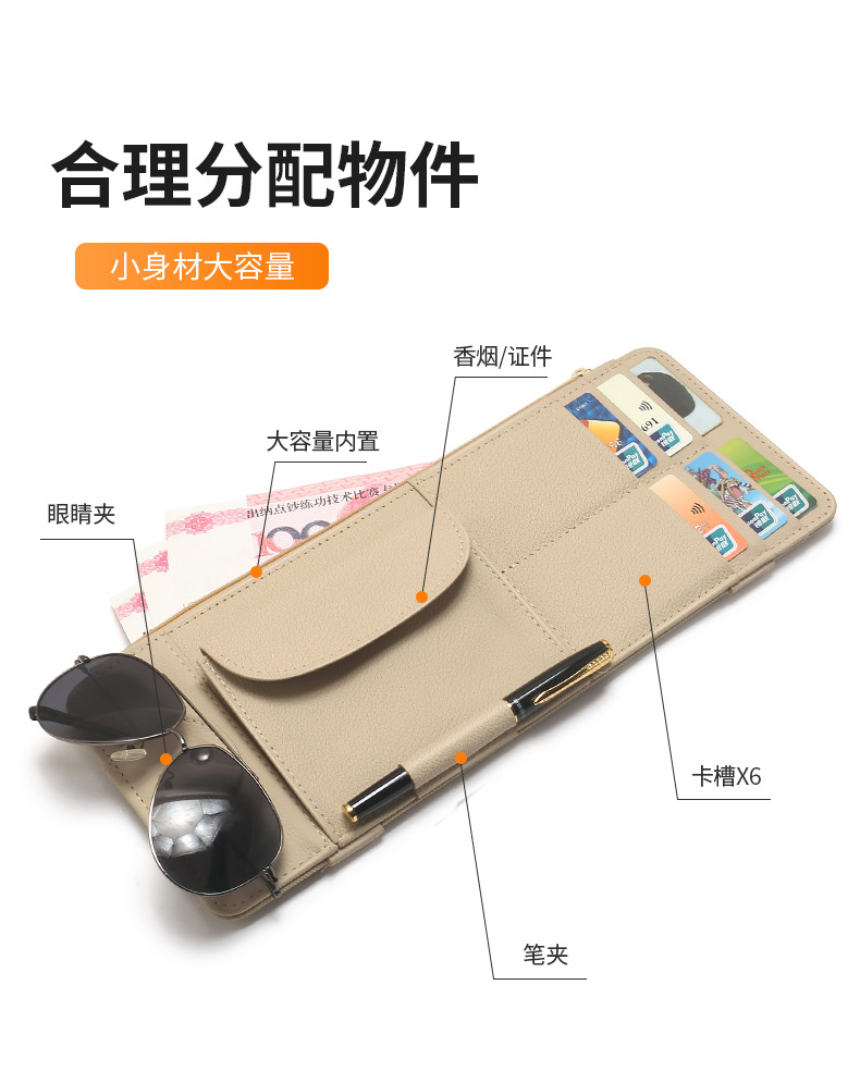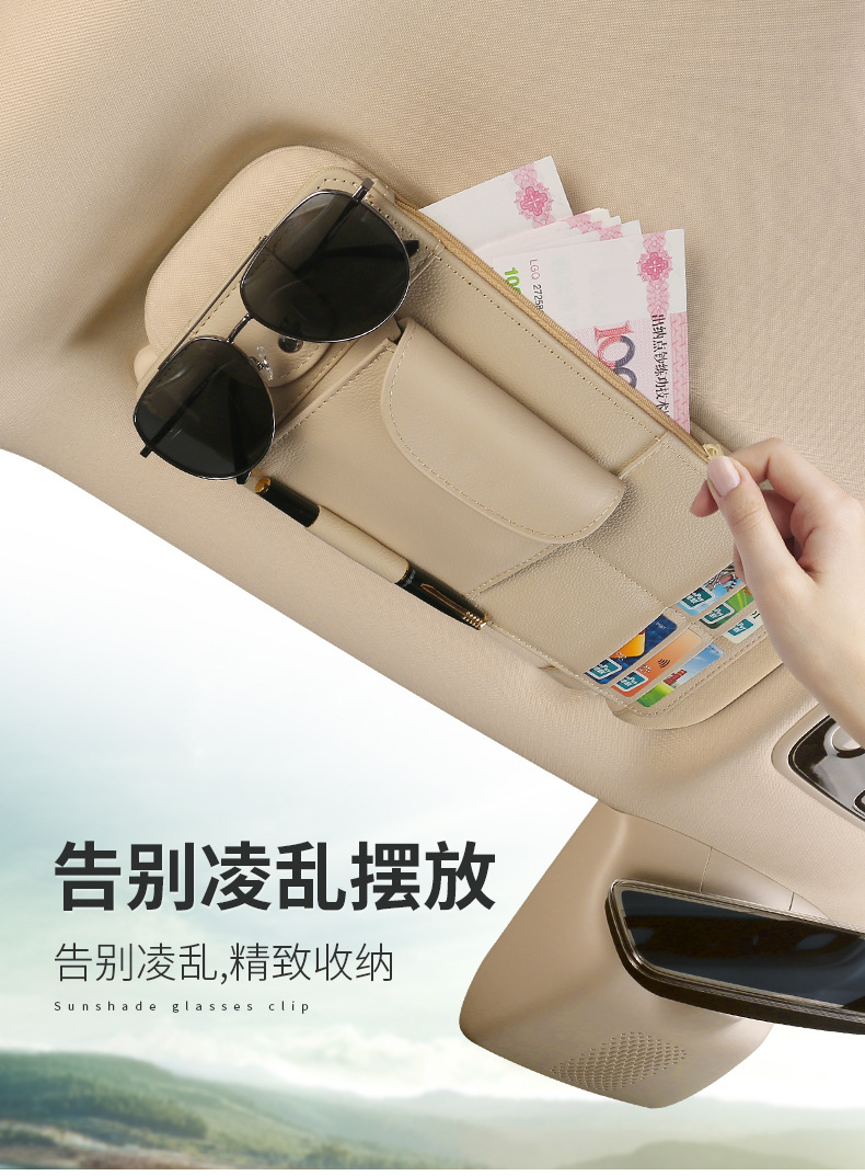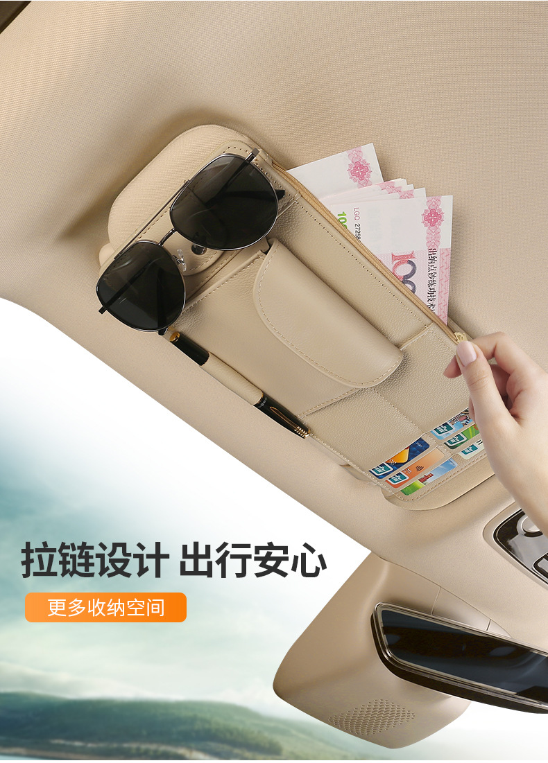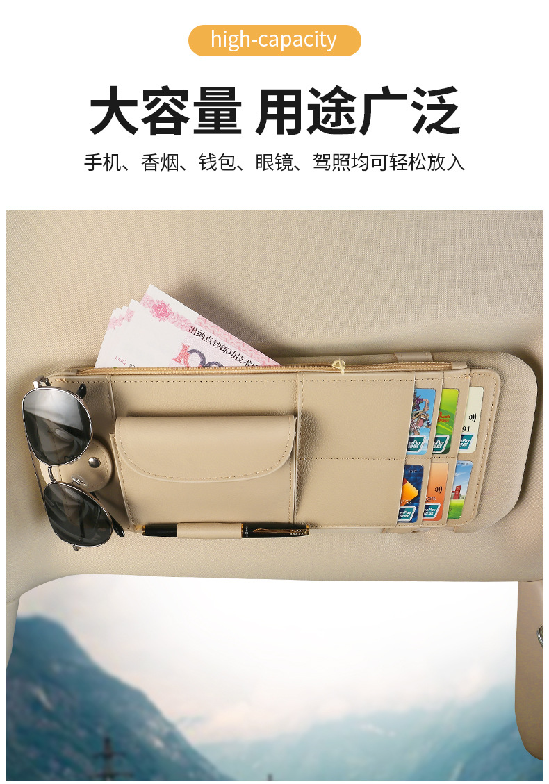 가죽 자동차 선 바이저 저장 다기능 자동차 운전자의 면허 케이스 카드 홀더 안경 프레임 인증서 가방 보관 가방