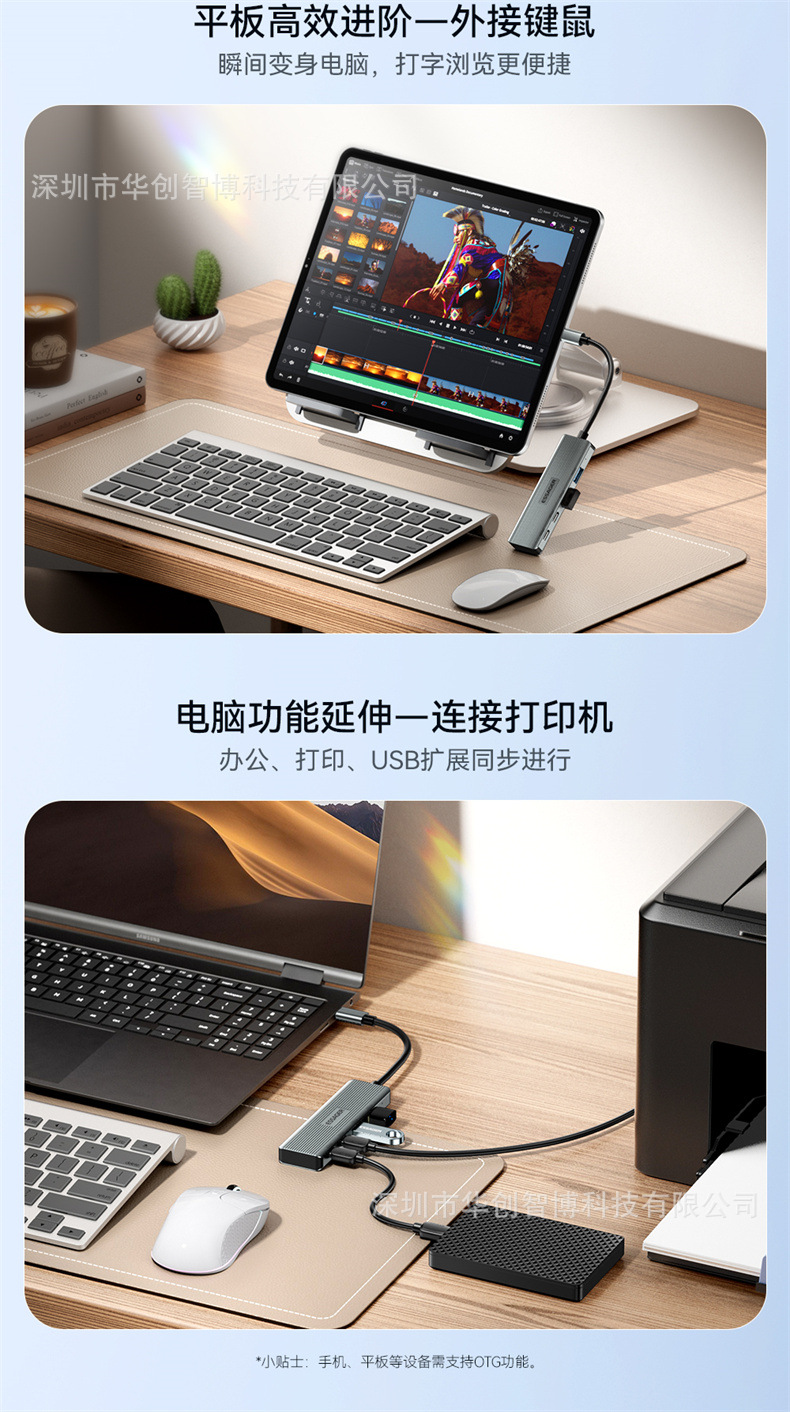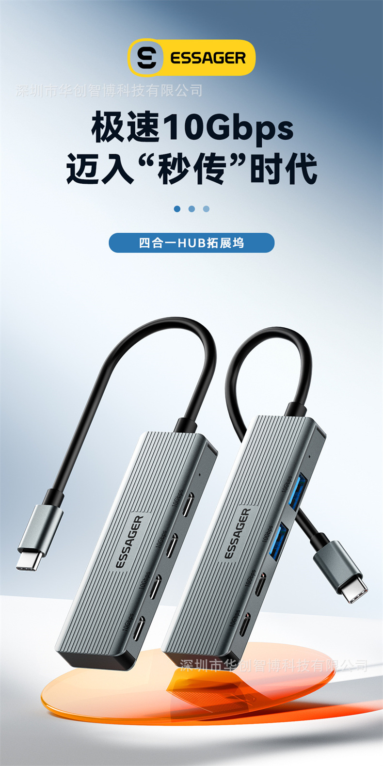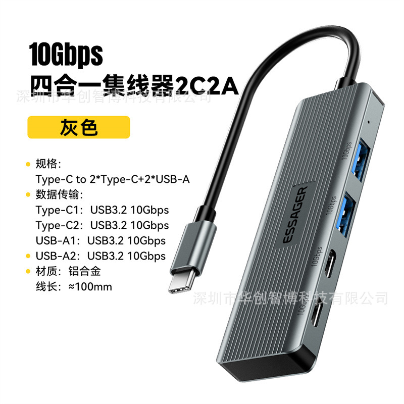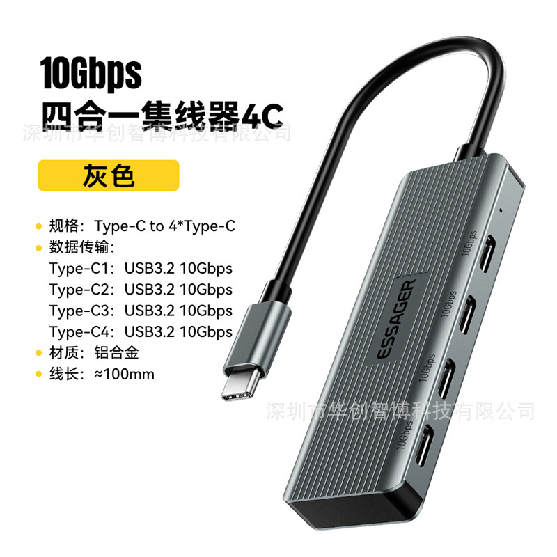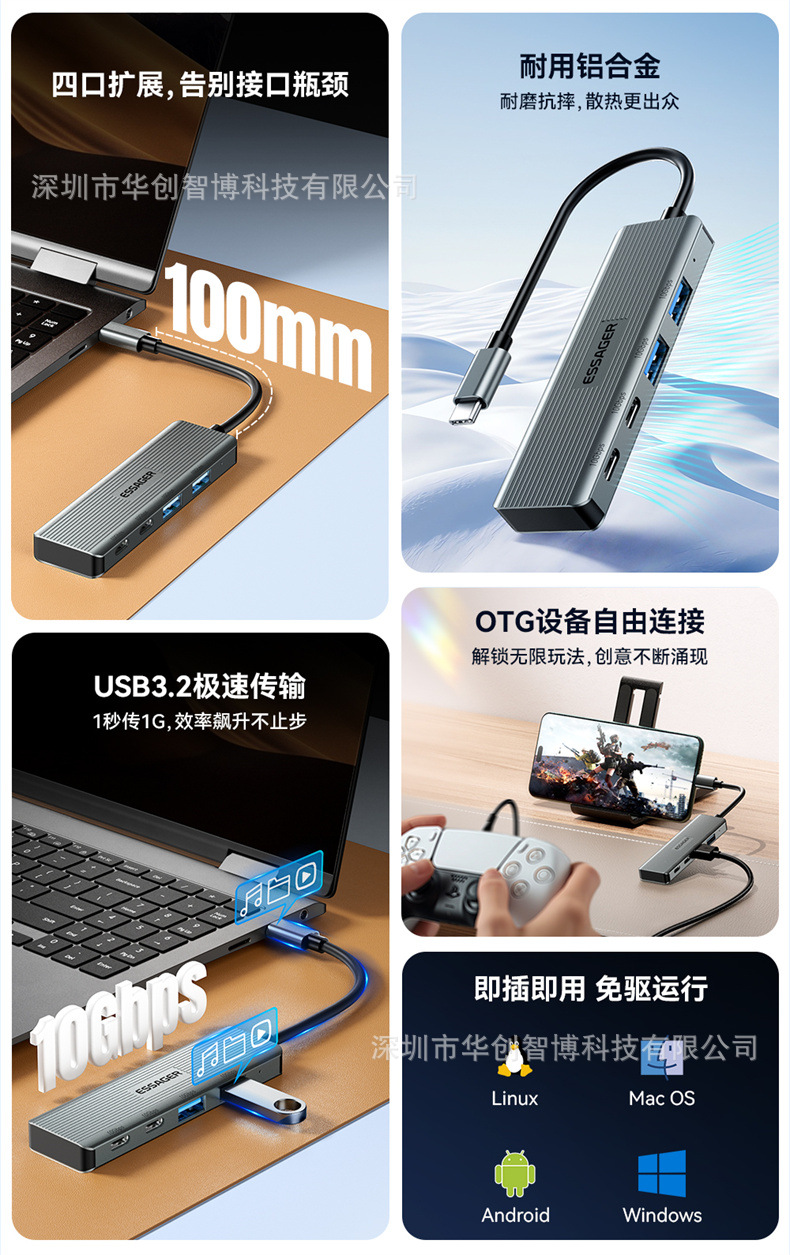 【产品特点】4个接口,10Gbps极速传输,铝合金外壳,简约设计,即插即用,免驱,扩展OTG功能,各项质量测试。