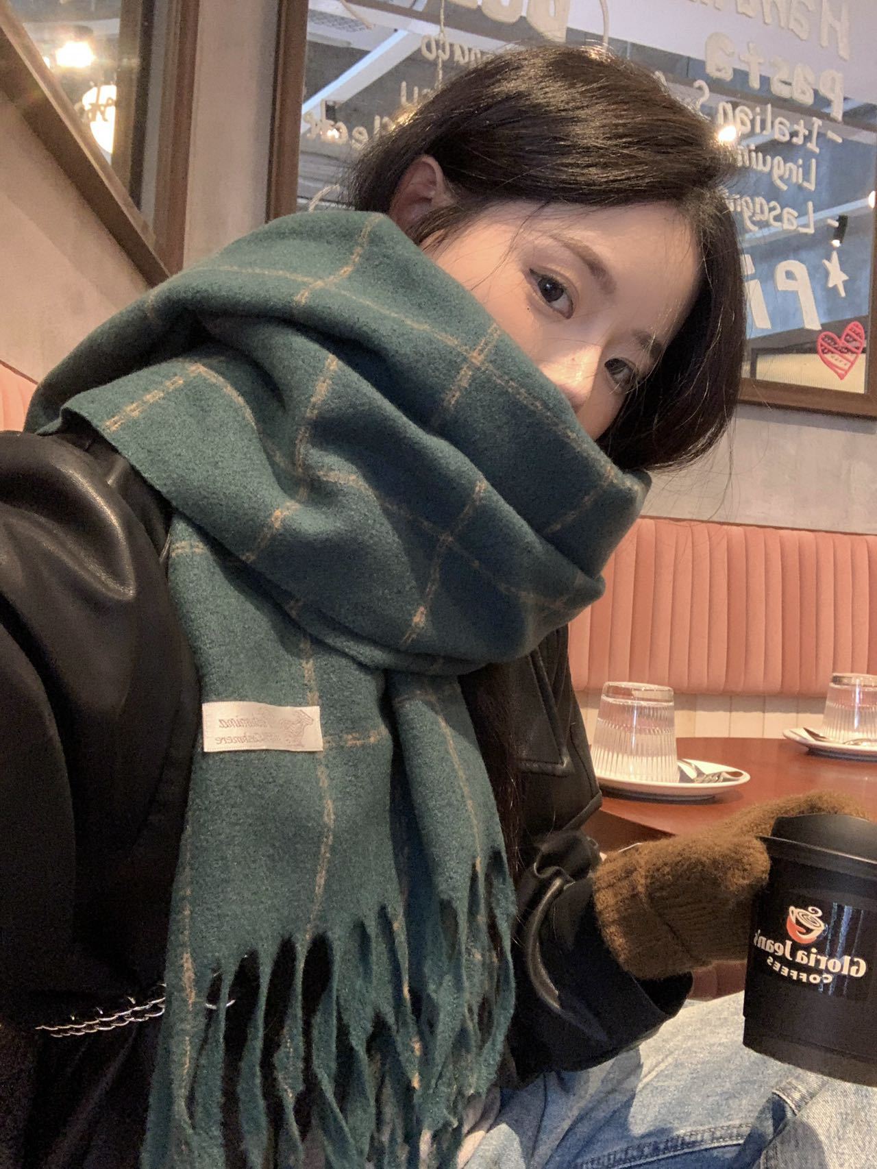 가을과 겨울 스카프 여성의 겨울 2024 새로운 스타일 스카프 생일 선물 캐시미어 격자 무늬 커플의 목도리 여성 외복스토어 가기