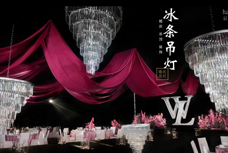 创意婚礼亚克力条酒店婚礼堂布置装饰欧式婚庆路引冰条水晶吊灯