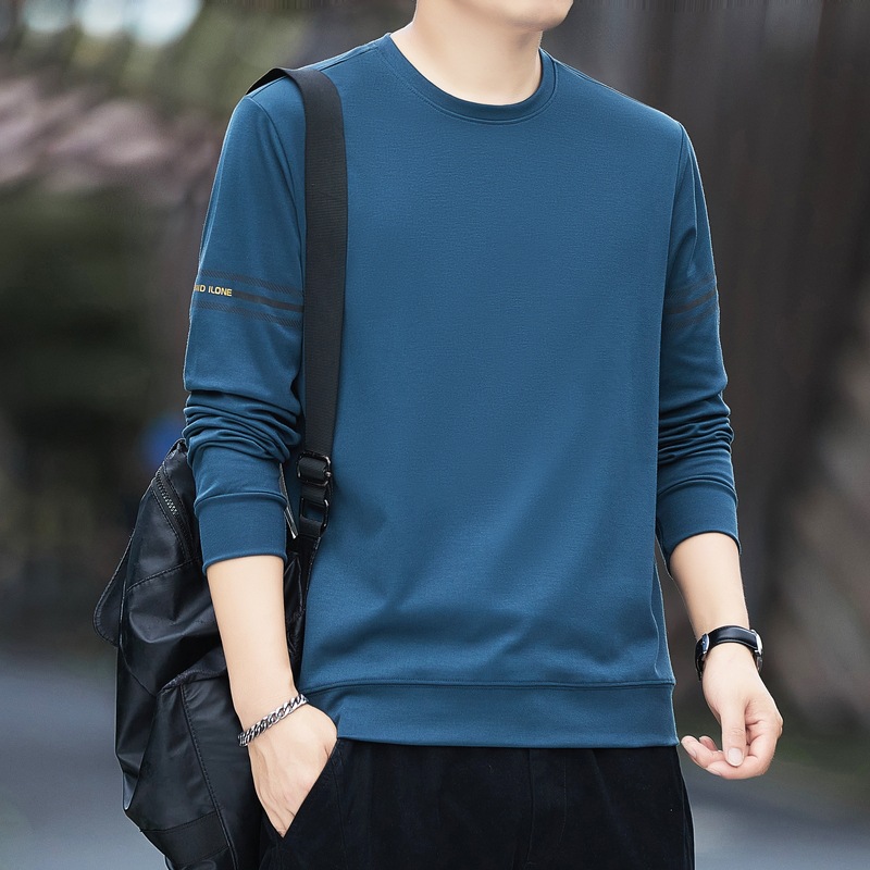 스웨덴 남자 2024 가을 새로운 느슨한 중년 및 젊은 뚱뚱한 긴팔 티셔츠 풀오버 트렌디 라운드 넥 남자 스웨덴