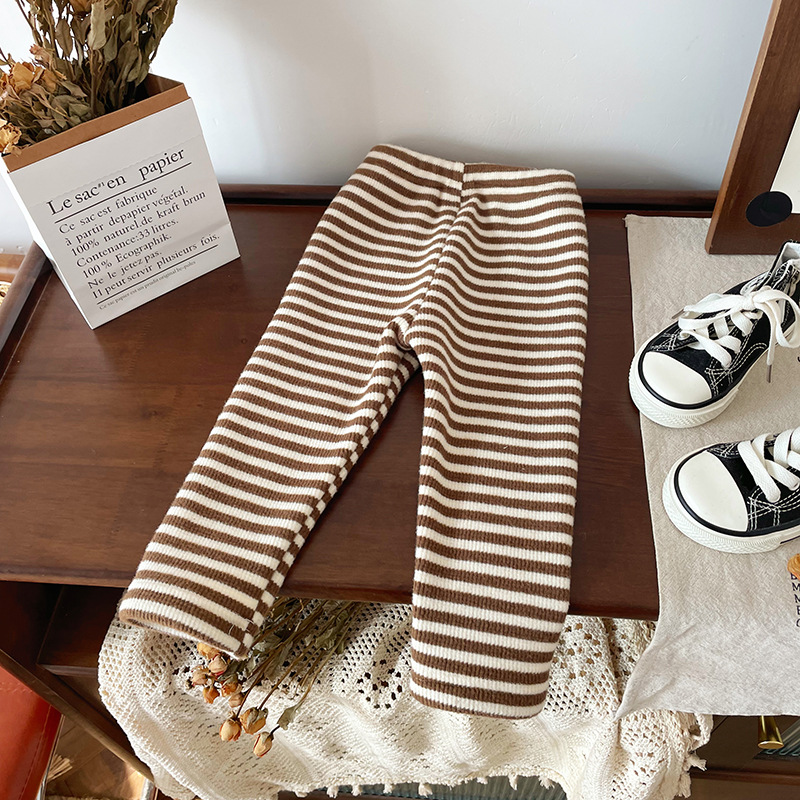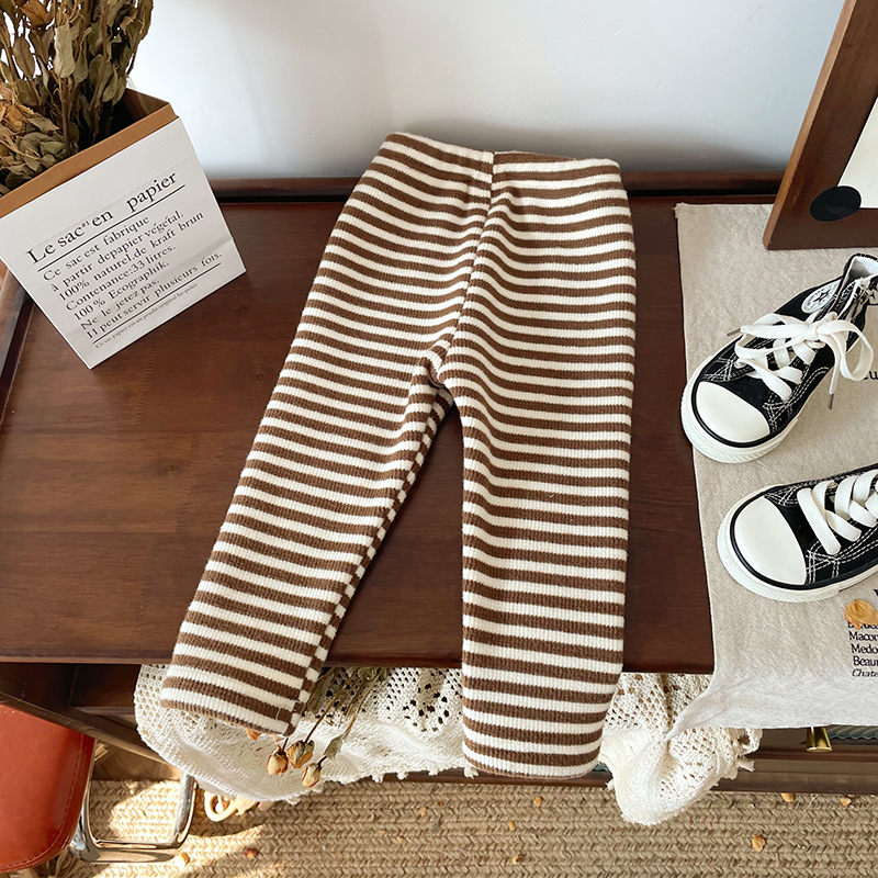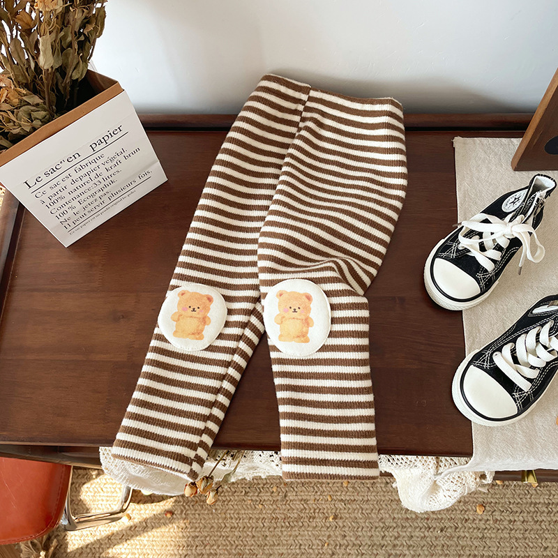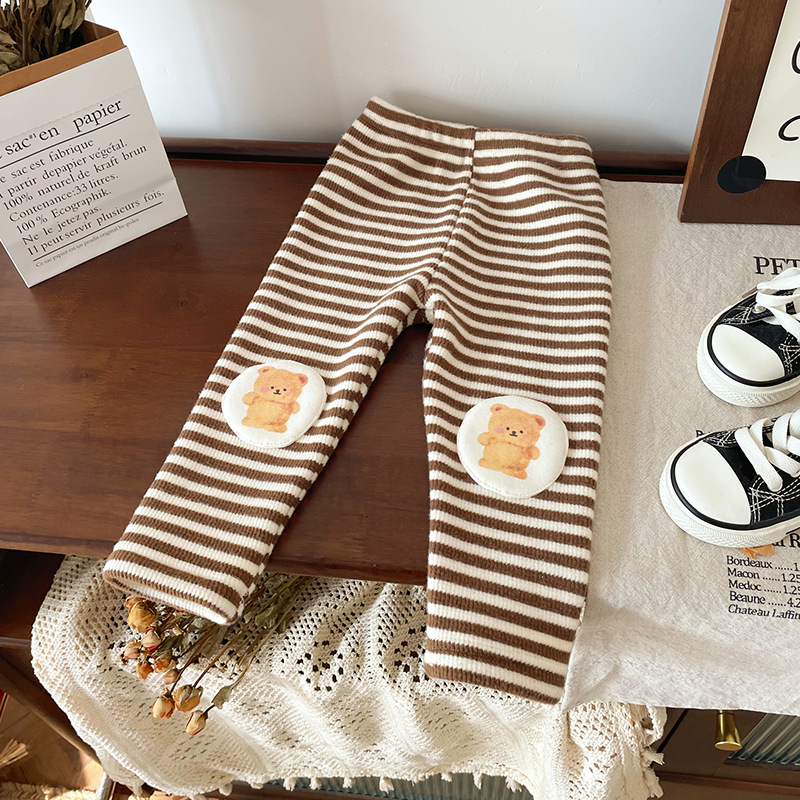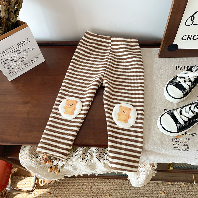 DK241213 가을과 겨울을위한 어린이 레깅스 2024 기모 두꺼운 따뜻한 슬리밍 스트라이프 만화 아기 레깅스스토어 가기