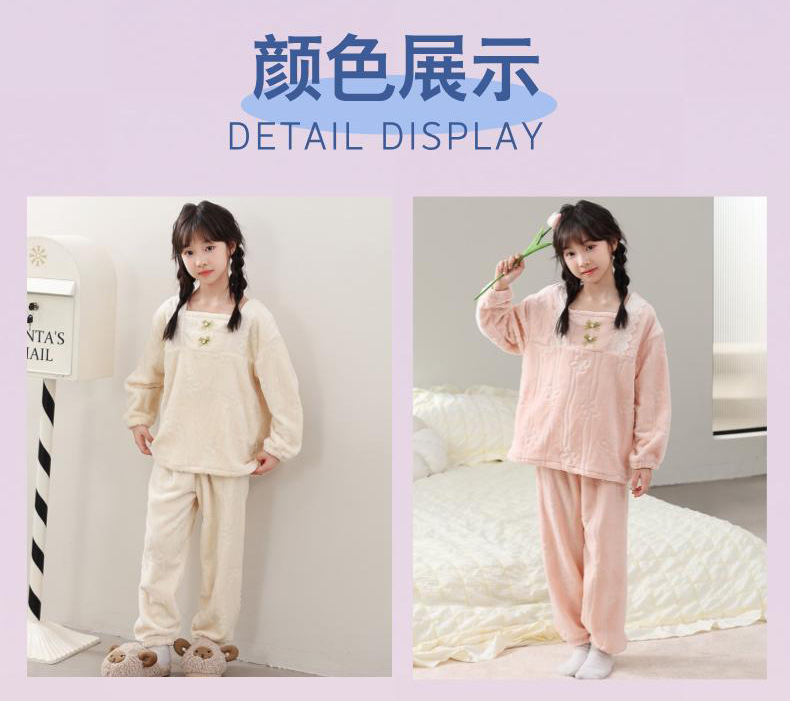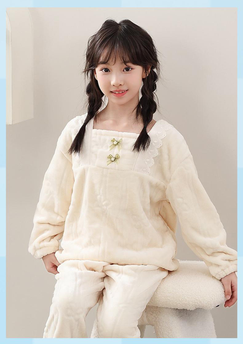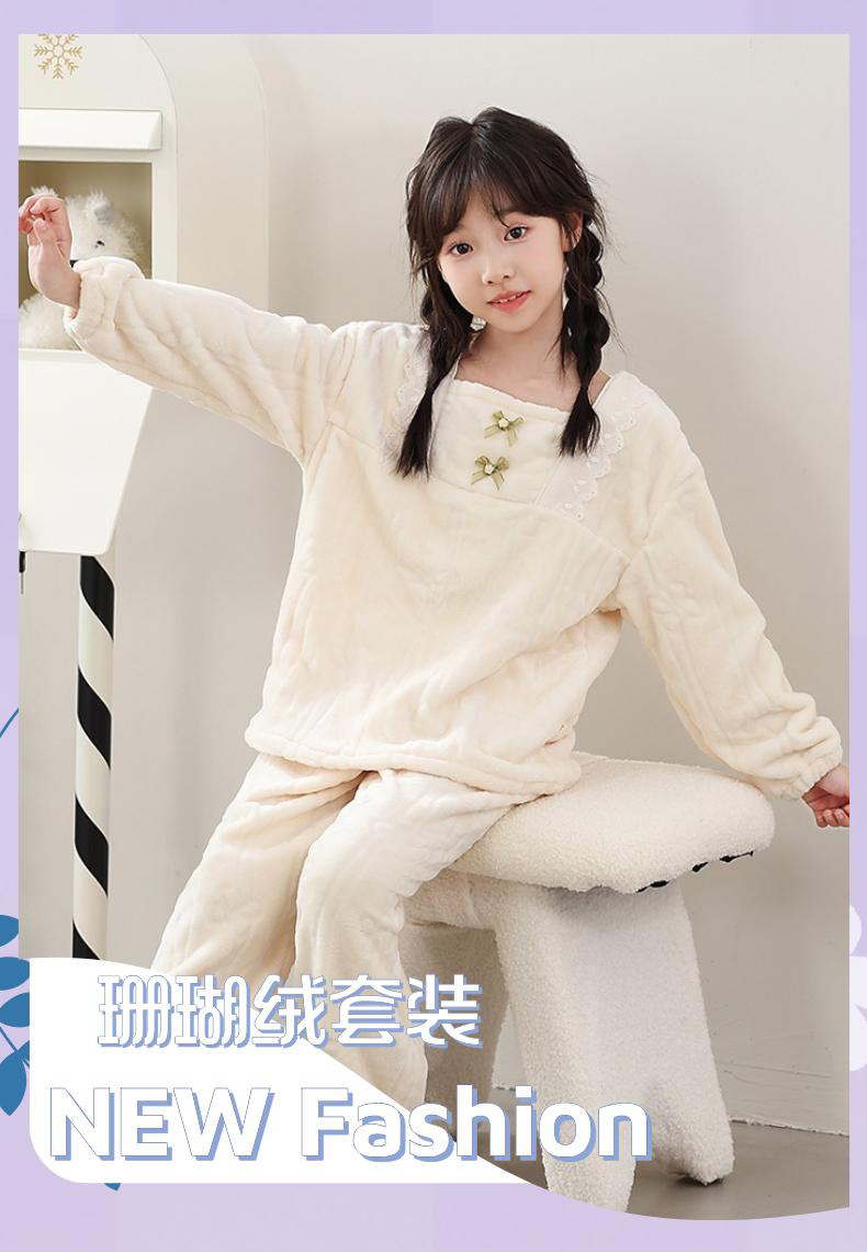 소녀 겨울 두꺼운 플란넬 잠옷 세트 2024 새로운 소녀 가을 겨울 서양 스타일 귀여운 기모 홈 옷스토어 가기
