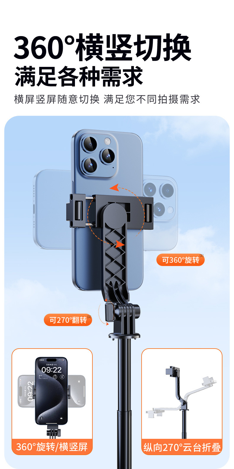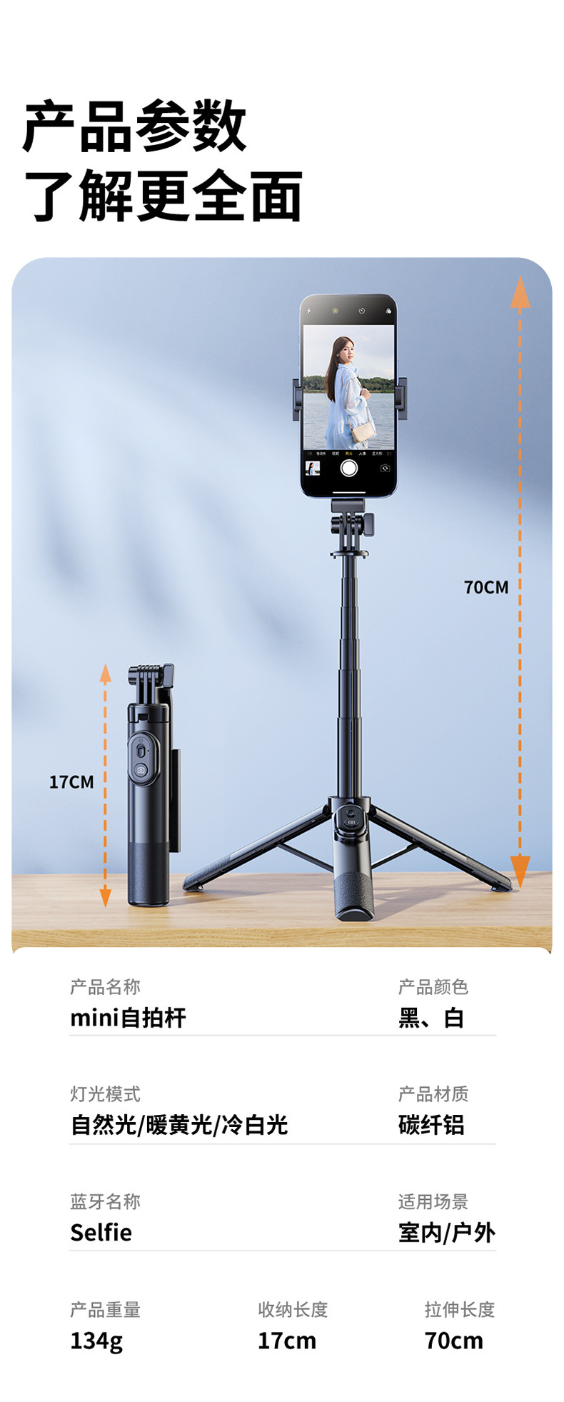 • 0.7m 휴대용 미니 알루미늄 합금 경량 + 자기 블루투스 리모콘