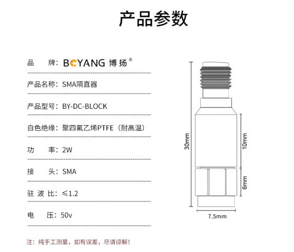 博扬 SMA隔直器 三元合金直流隔断器 6G阻隔器 1个装 BY-DC-BLOCK*1 合格证