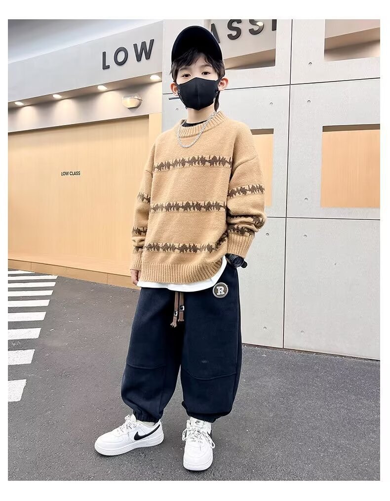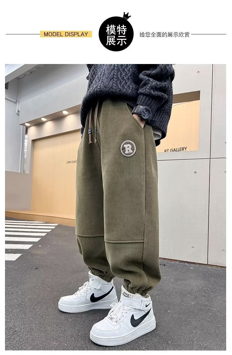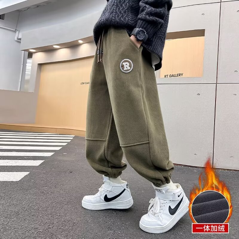 남자들의 겨울 캐시미어 바지 가을과 겨울 2024 새로운 어린이 면화 스포츠 바지 원피스 캐시미어 대형 어린이 두꺼운 운동복