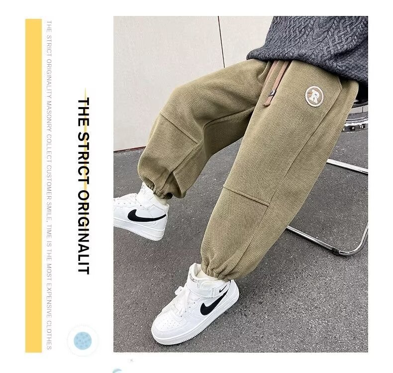 남자들의 겨울 캐시미어 바지 가을과 겨울 2024 새로운 어린이 면화 스포츠 바지 원피스 캐시미어 대형 어린이 두꺼운 운동복스토어 가기