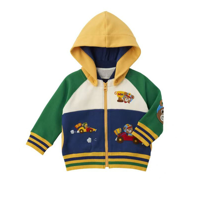 秋冬新款卡通拼接刺绣连帽休闲外套