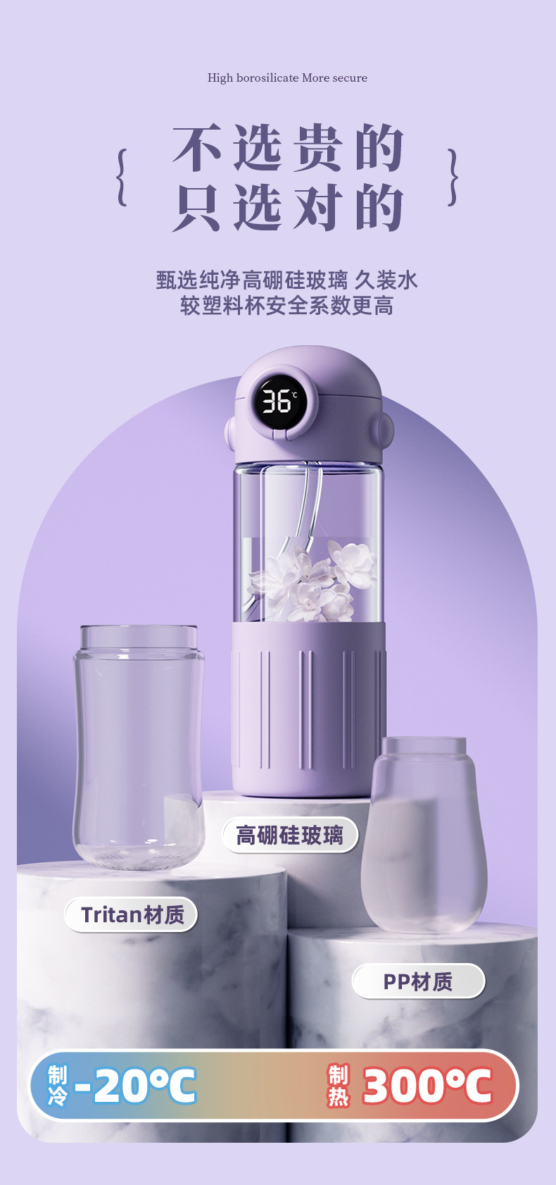 임산부의 밀짚 유리 중력 공 모성 성인 휴대용 지능형 온도 측정 물 컵을 마시기 위해 누워스토어 가기