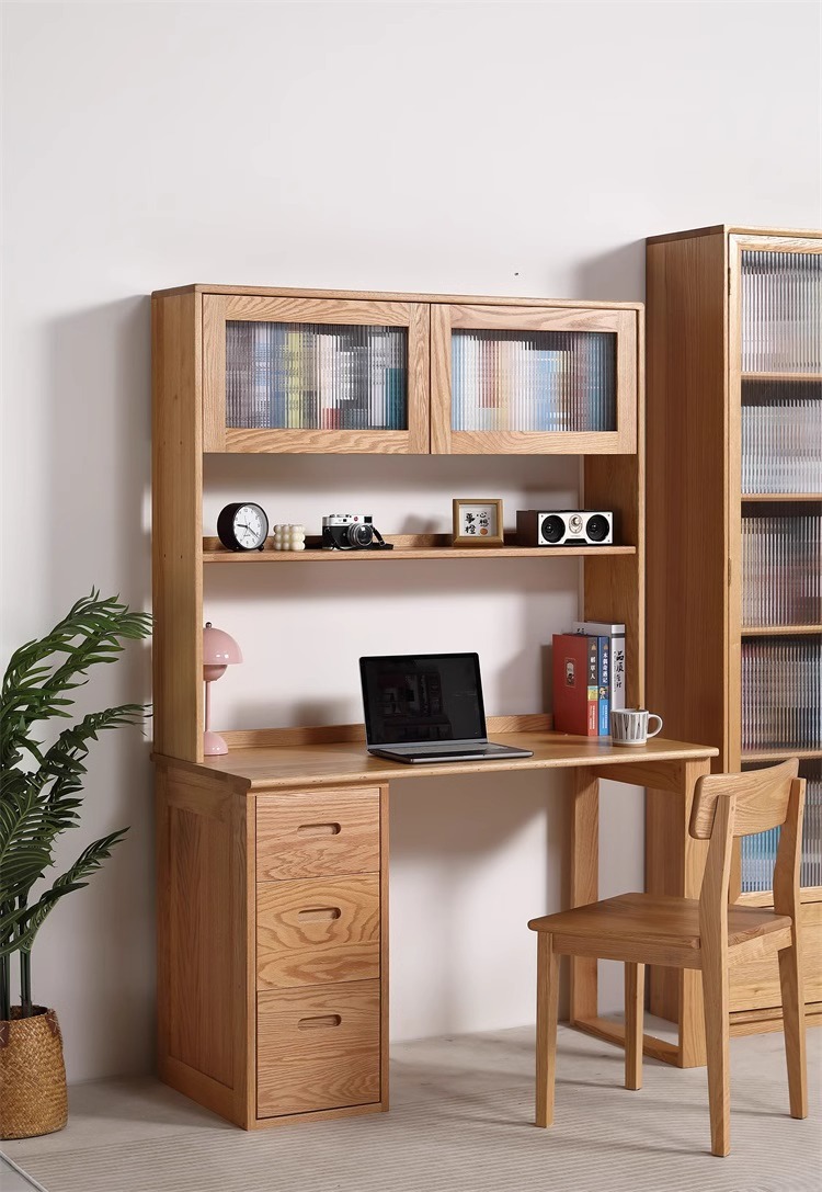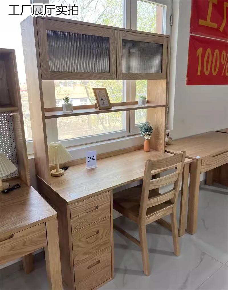 풀 솔리드 우드 레드 오크 데스크 서랍 대용량 현대 간단한 연구 테이블 쓰기 컴퓨터 데스크 캐비닛 조합스토어 가기
