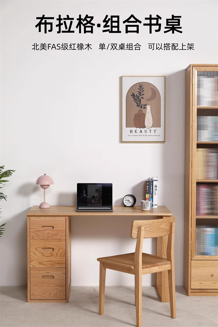풀 솔리드 우드 레드 오크 데스크 서랍 대용량 현대 간단한 연구 테이블 쓰기 컴퓨터 데스크 캐비닛 조합