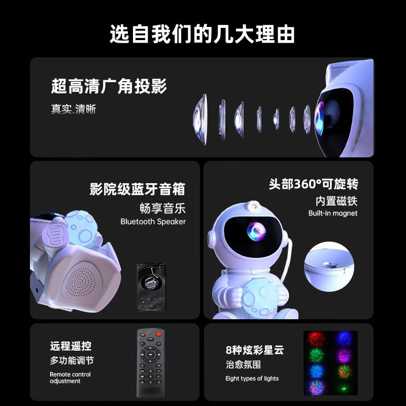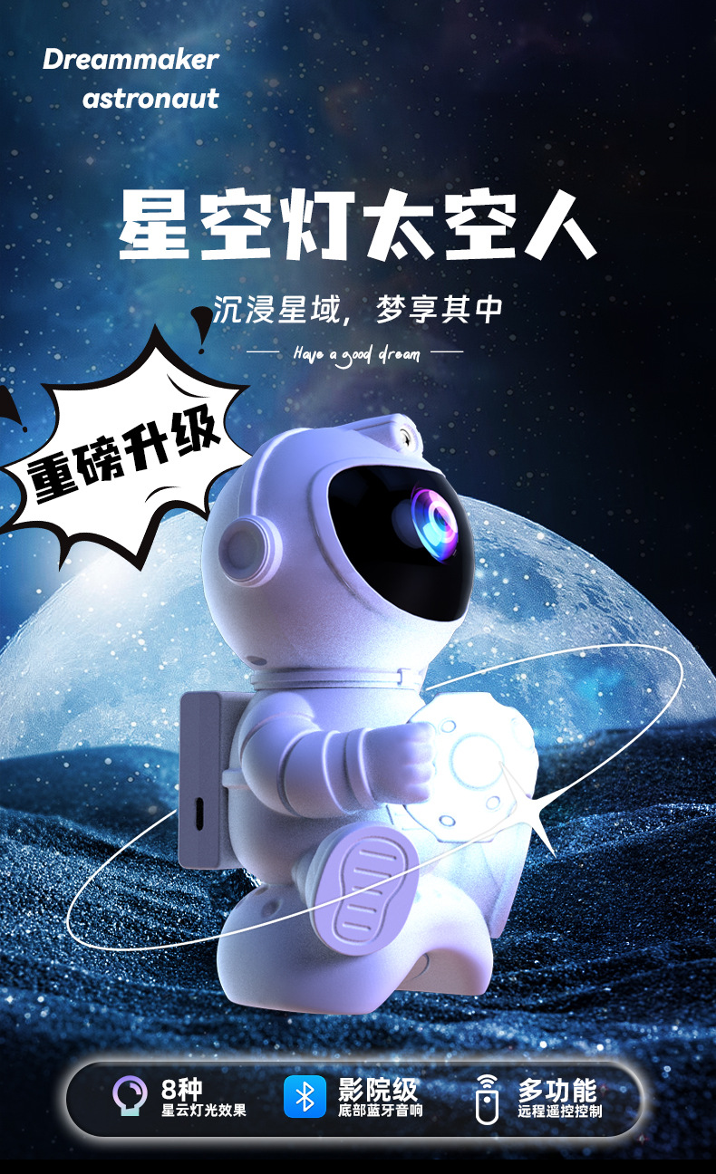 스타 라이트 블루투스 오디오 나이트 라이트 우주 비행사 프로젝션 나이트 라이트를 들고 새로운 로켓 우주 비행사스토어 가기