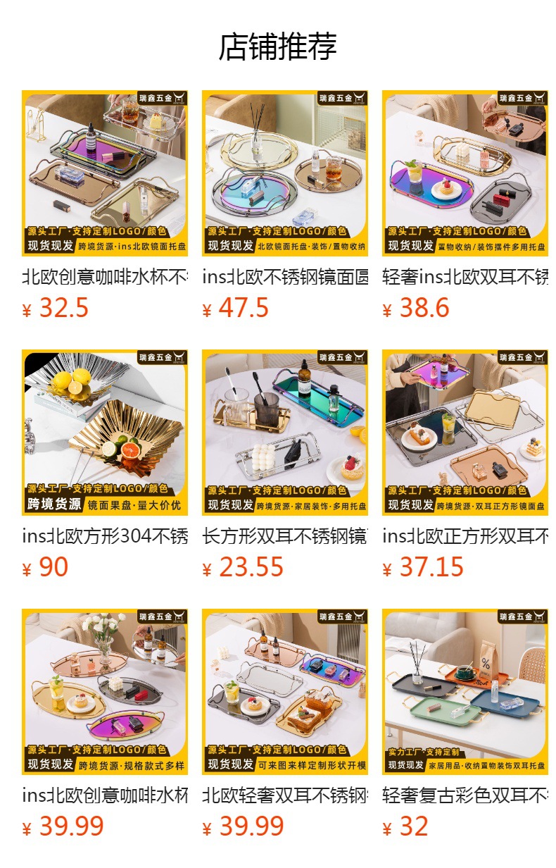 노르딕 크리에이티브 커피 컵 스테인레스 스틸 트레이 인 스타일 쥬얼리 라이트 럭셔리 미러 바이나럴 타월 장식 스퀘어 플레이트스토어 가기