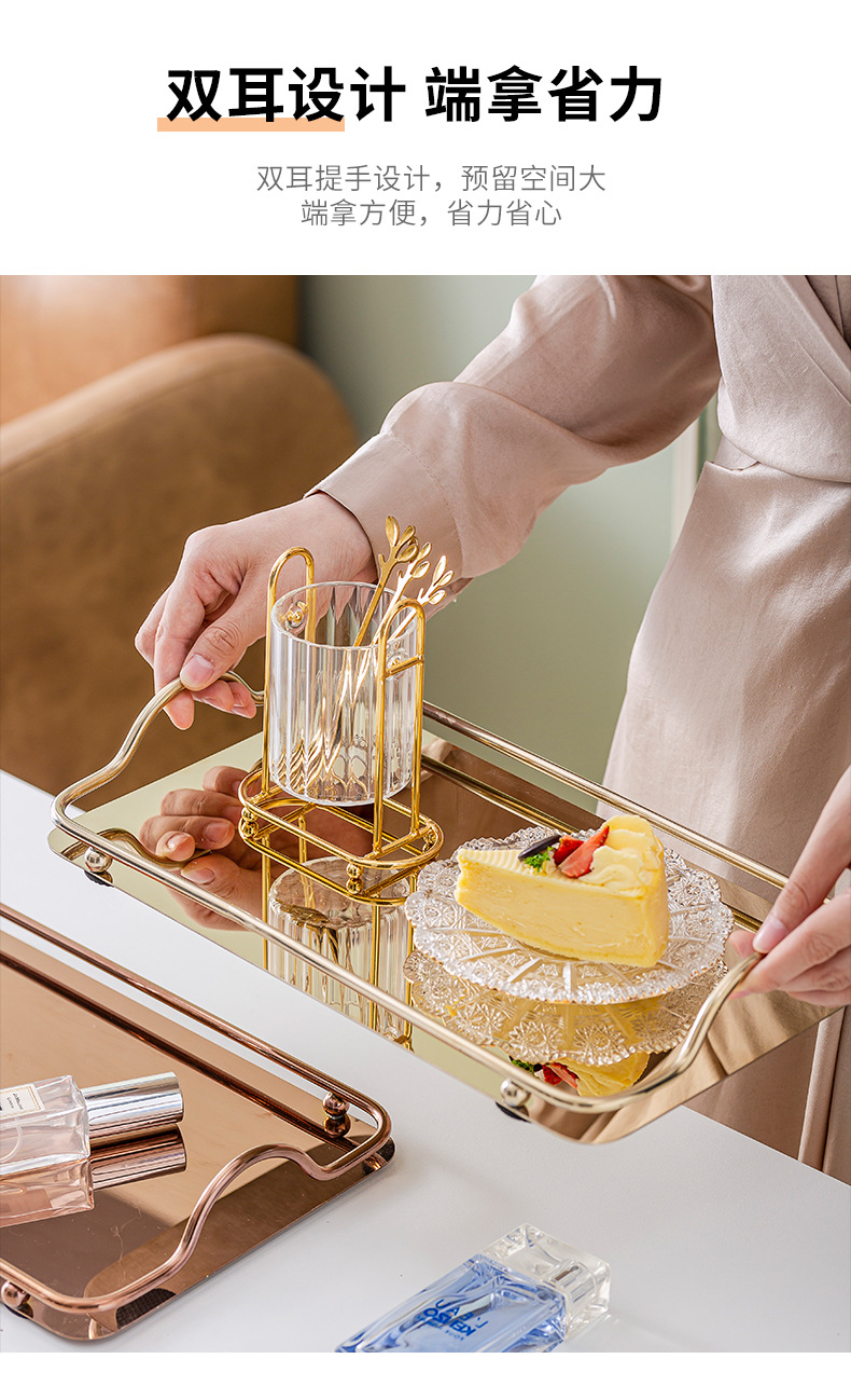 노르딕 크리에이티브 커피 컵 스테인레스 스틸 트레이 인 스타일 쥬얼리 라이트 럭셔리 미러 바이나럴 타월 장식 스퀘어 플레이트