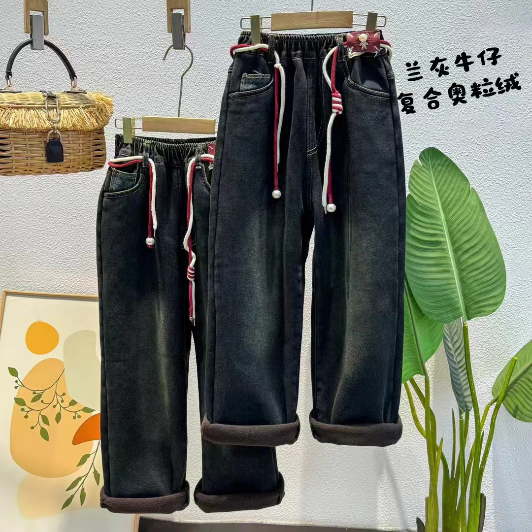 소년 소녀 청바지 새로운 어린이 바지 한국 스타일 남성과 여성의 패셔너블 루즈 바지 캐주얼 잘 생긴 바지스토어 가기