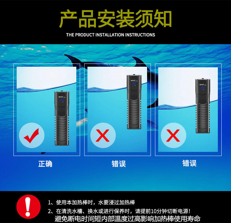 하이바 어항 난방대 수족관 일정한 온도 가변 주파수 히터 낮은 수위 작은 거북이 탱크 절전 히터