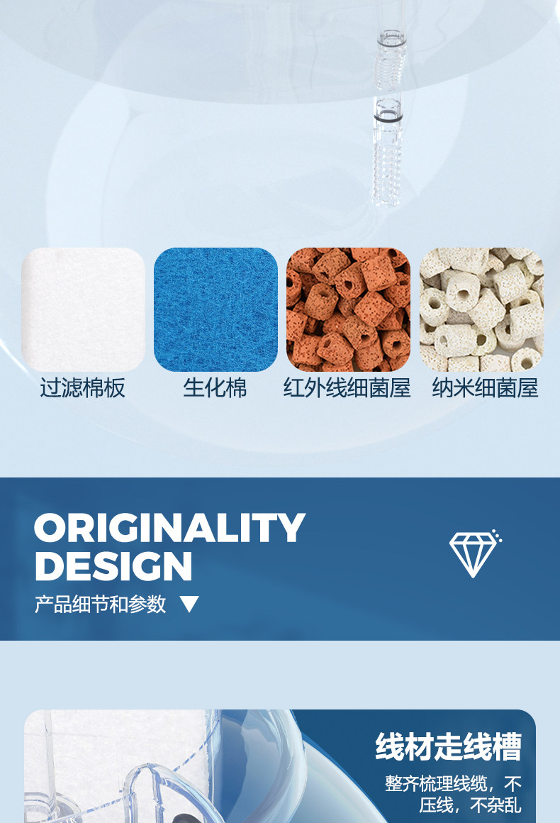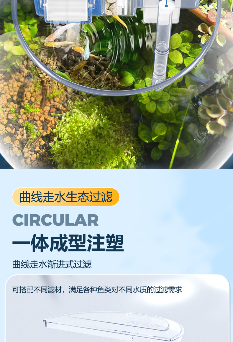 Jinlijia 둥근 물고기 탱크 필터 산소 3 대 1 작은 필터 상자 세라믹 탱크 조용한 물방울 상자 폭포