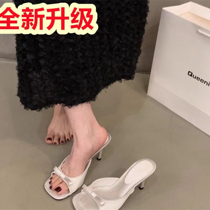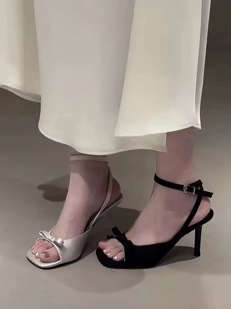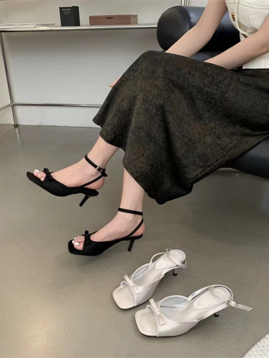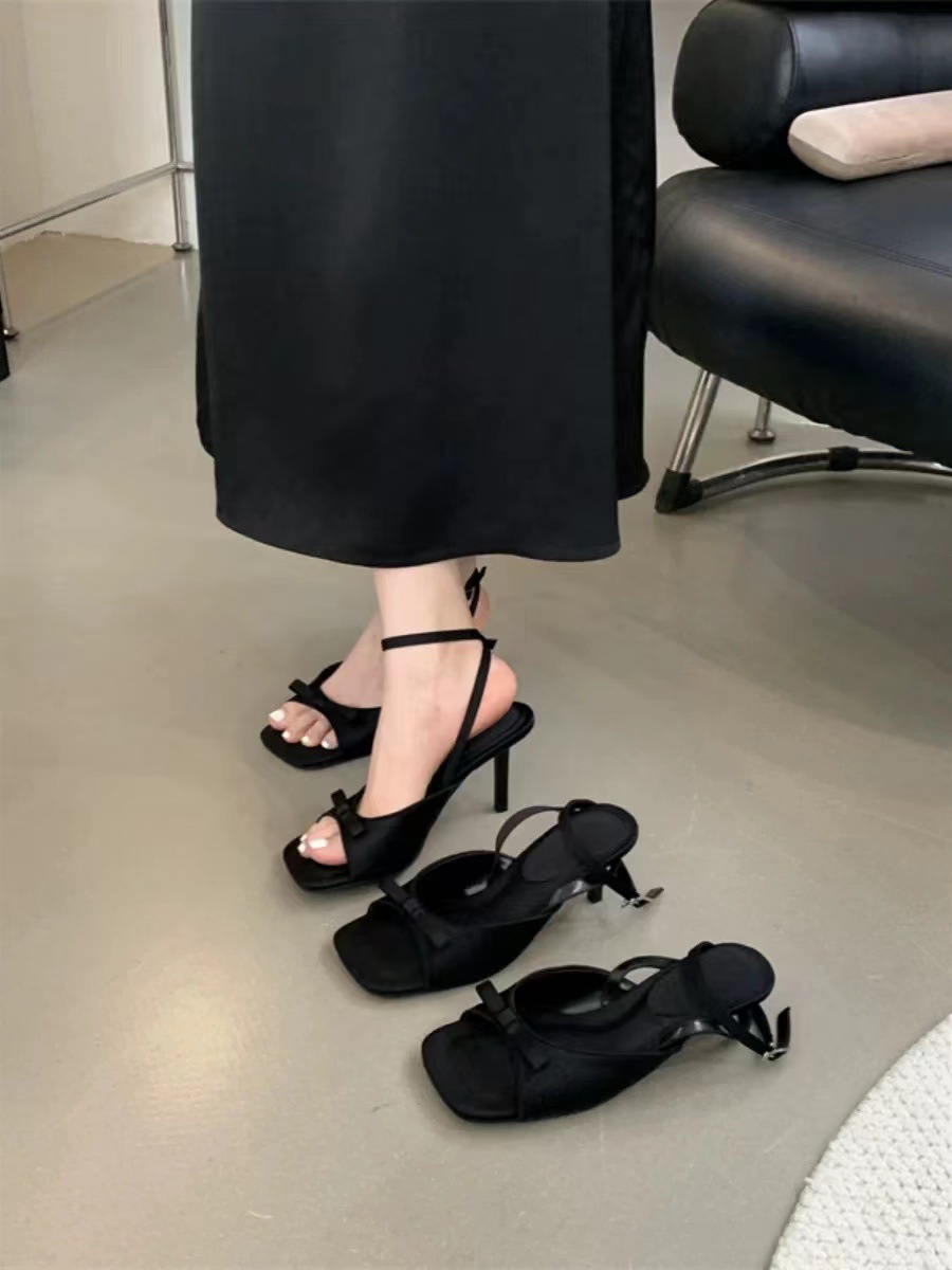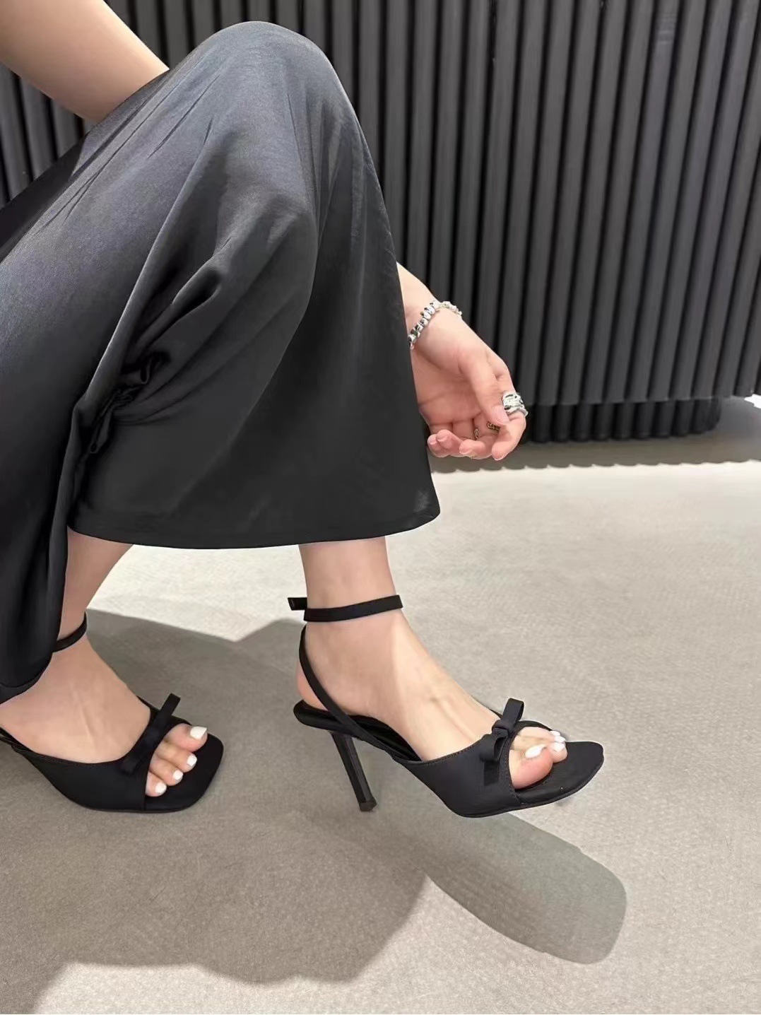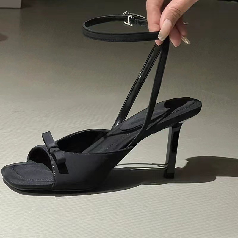 섹시한 블랙 하이힐 샌들 여자 2024 뉴 아프 트립 하이힐 여름 오픈 발가락 실버 로마 신발스토어 가기