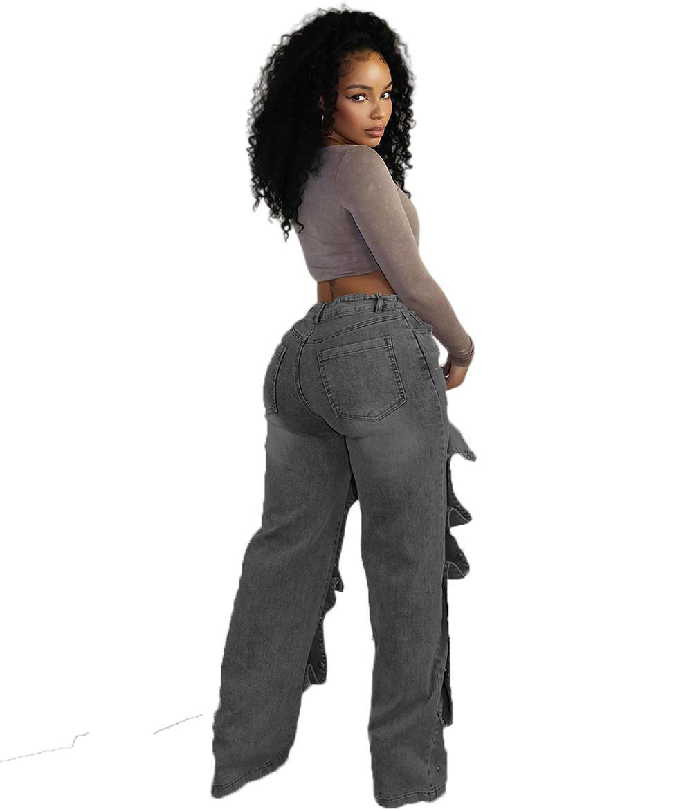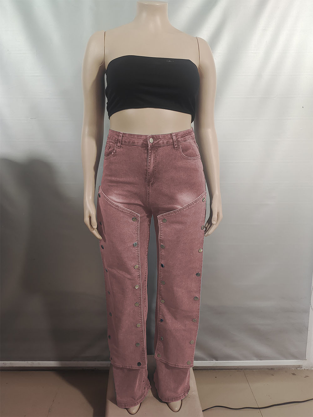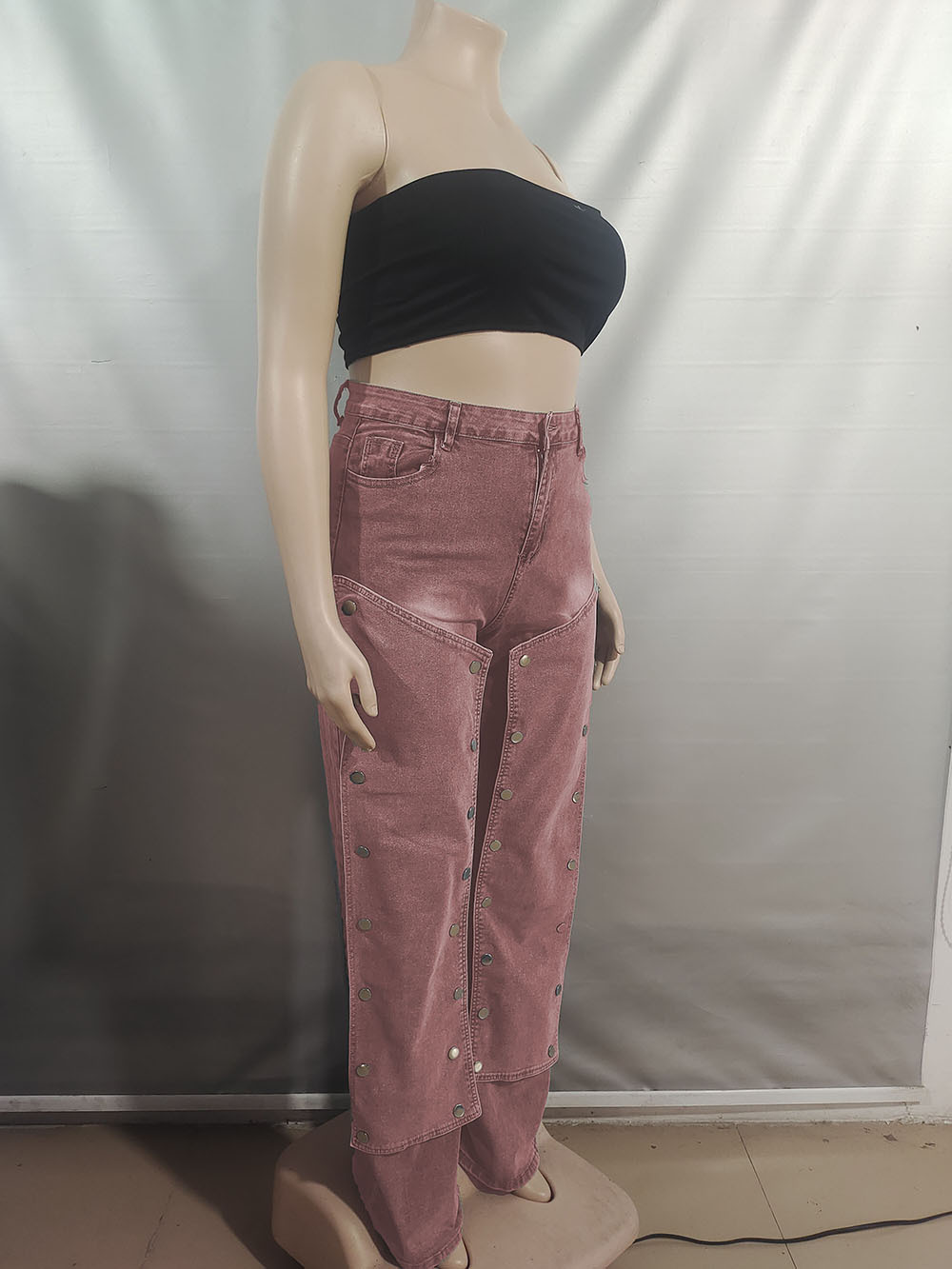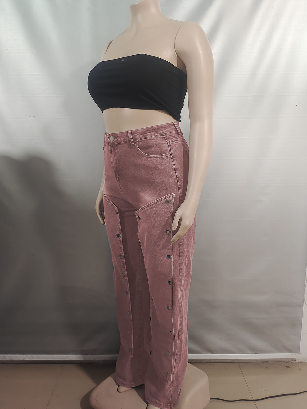 유럽과 미국 여성의 스트레이트 레그 청바지 아마존 국경 여성 가을 거리 패션 분리 버튼 높은 허리 바지