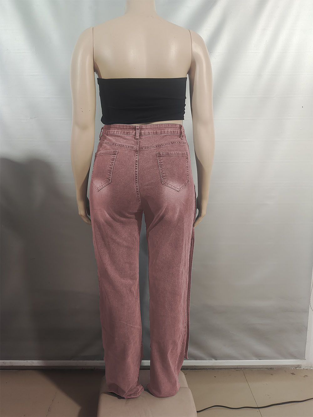유럽과 미국 여성의 스트레이트 레그 청바지 아마존 국경 여성 가을 거리 패션 분리 버튼 높은 허리 바지스토어 가기