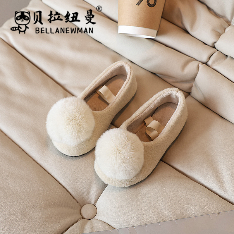 두두슈즈 여아용 가을 겨울 양털 안감 외출용 면화 신발 2025 신상 털볼 슬립온 귀여운 털신발
