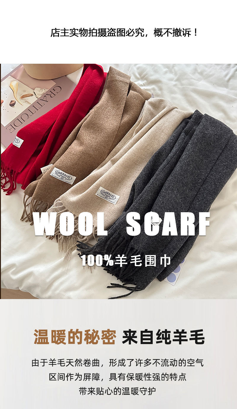 솔리드 컬러 WOOL100 여성용 울 스카프 2024 가을과 겨울 새로운 올 매치 고급 중형 및 남성용 긴 따뜻한 스카프스토어 가기