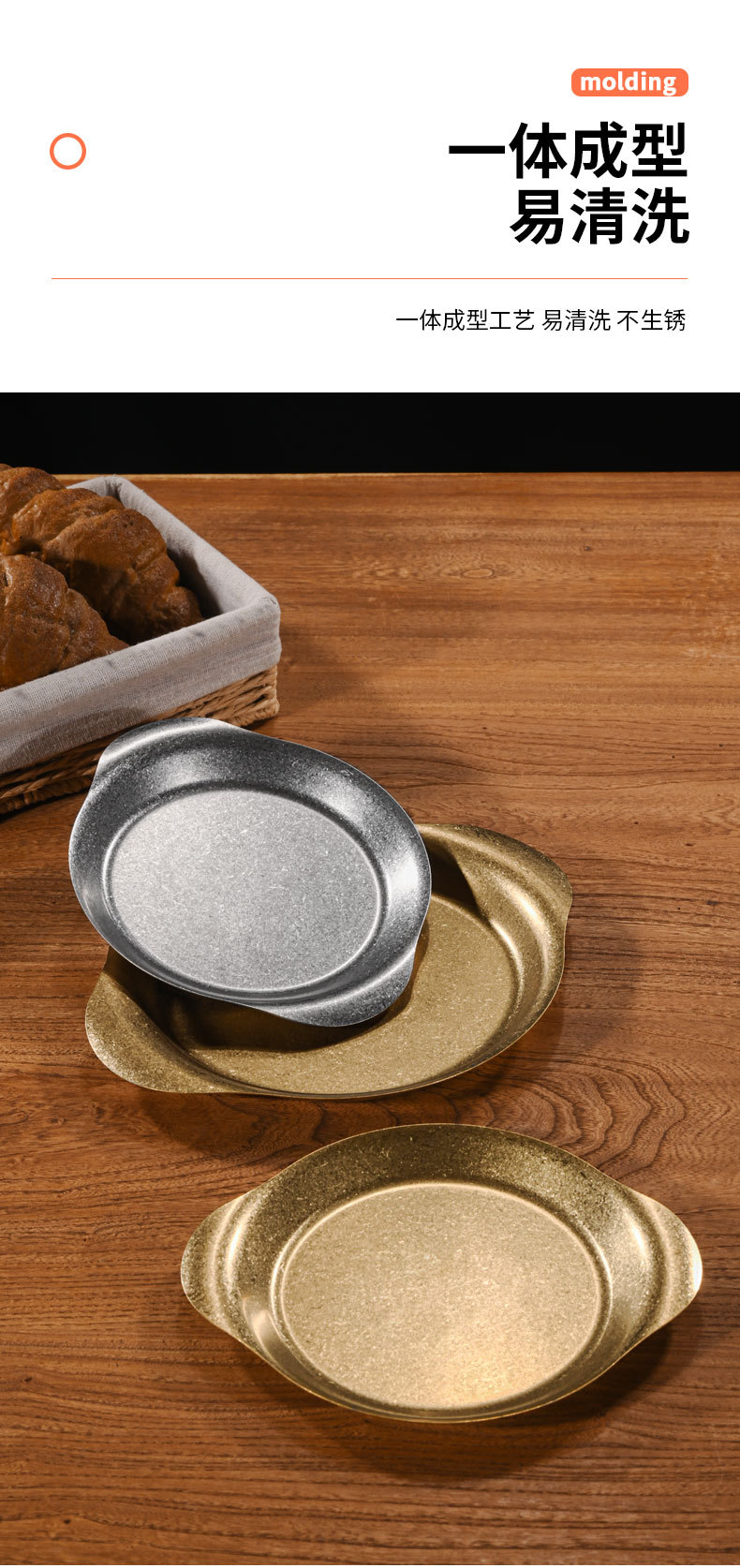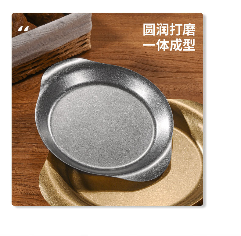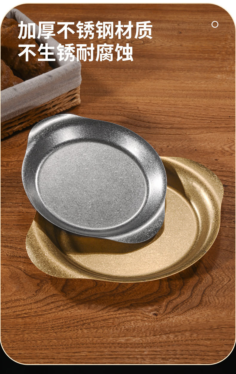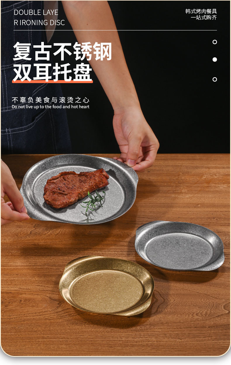 빈티지 스테인레스 스틸 바이노럴 라운드 트레이 올드 레스토랑 플랫 프라이드 치킨 파스타 스네이크 플레이트 바베큐 맞춤 플레이트스토어 가기