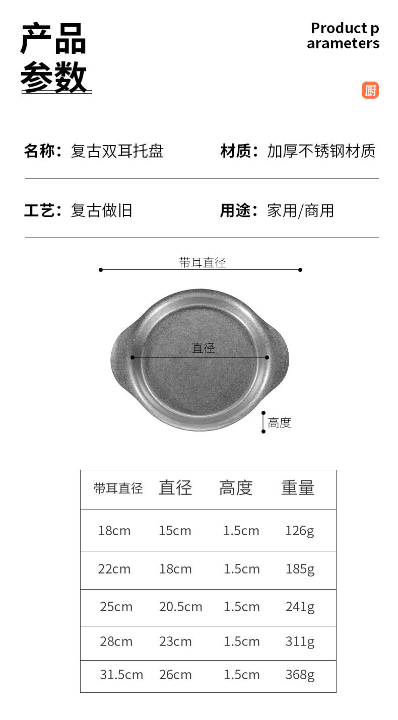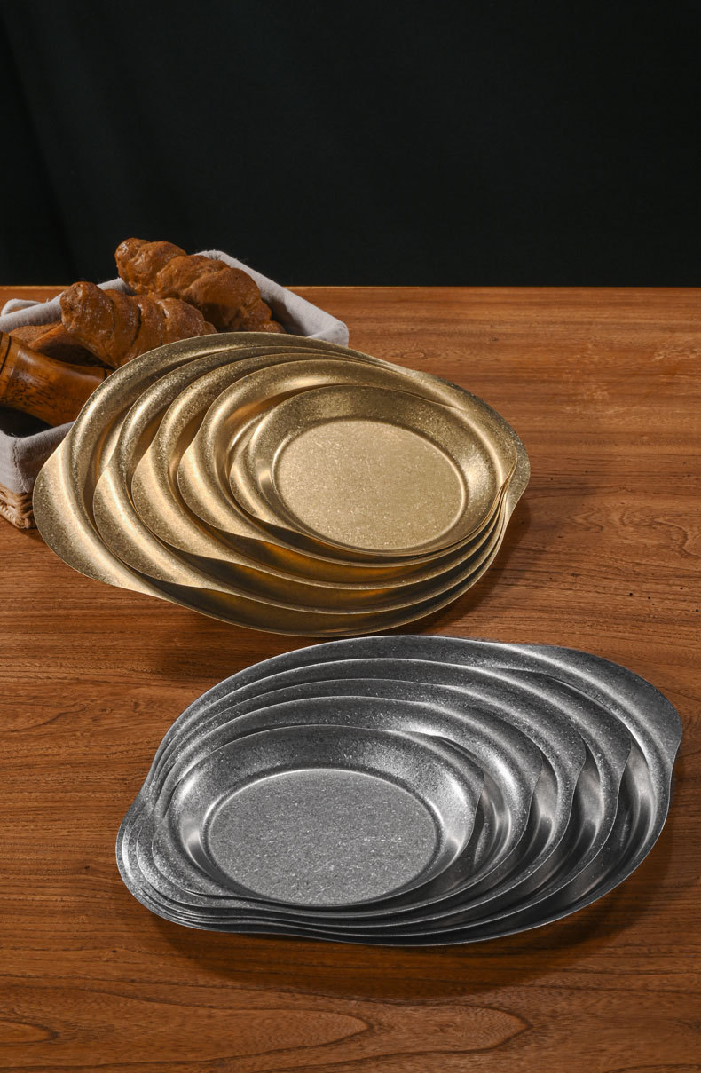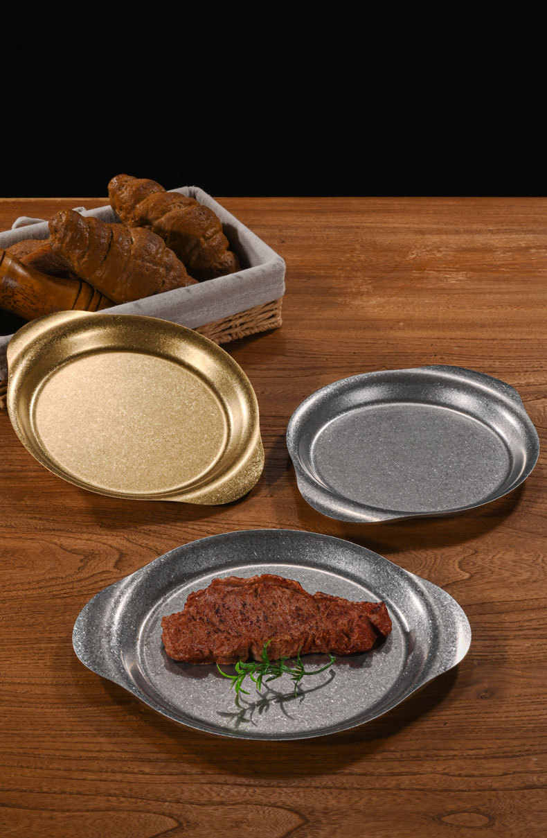 빈티지 스테인레스 스틸 바이노럴 라운드 트레이 올드 레스토랑 플랫 프라이드 치킨 파스타 스네이크 플레이트 바베큐 맞춤 플레이트스토어 가기