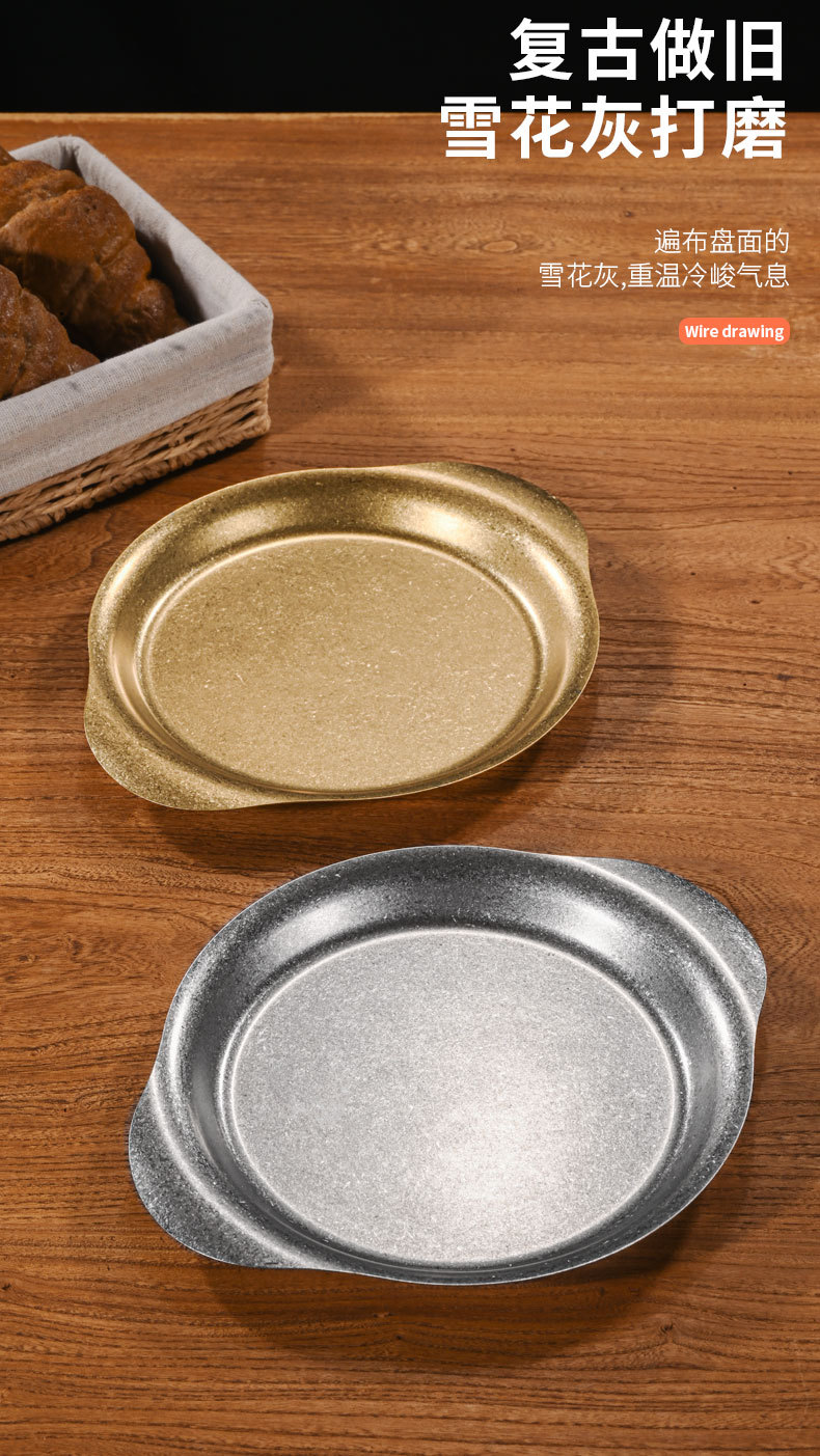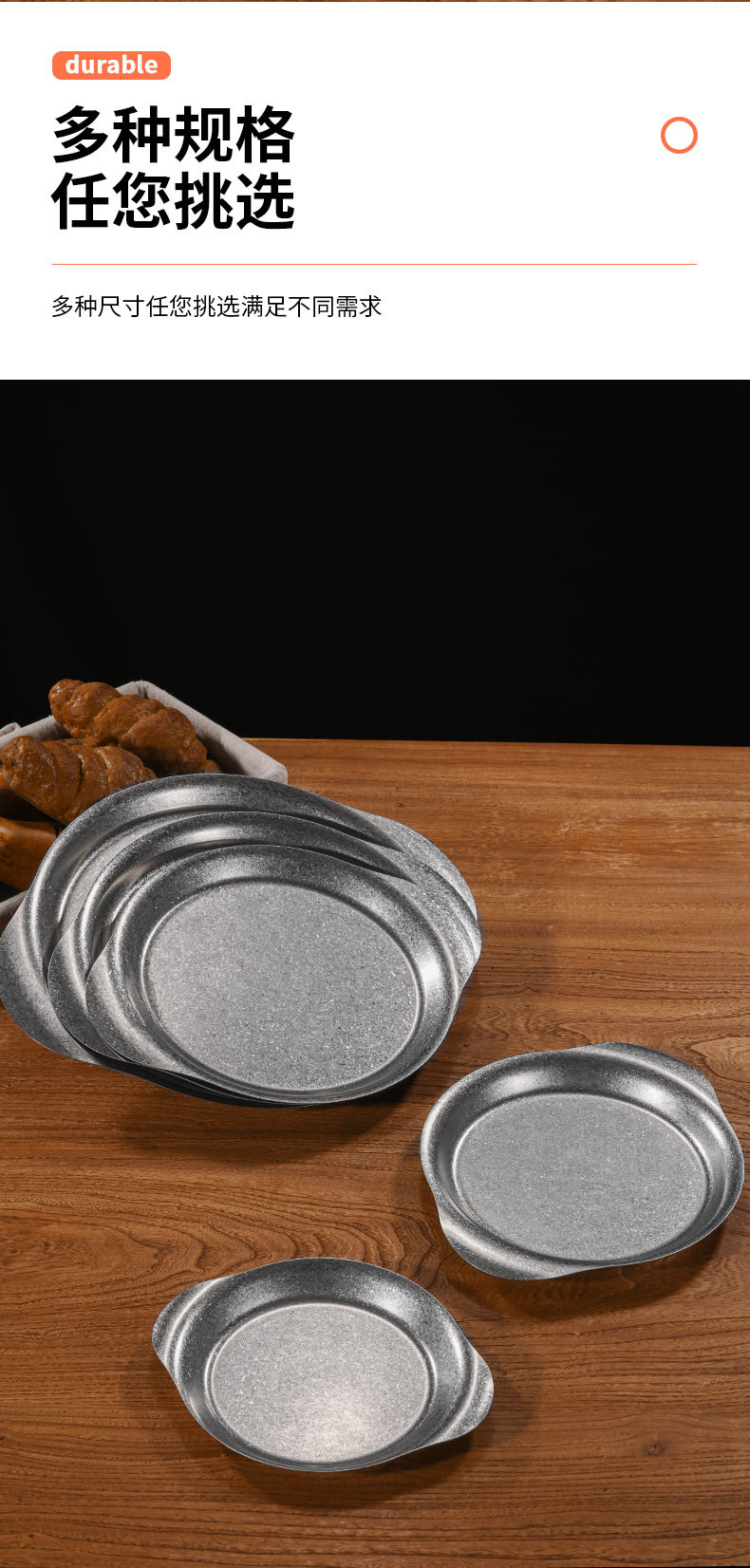 빈티지 스테인레스 스틸 바이노럴 라운드 트레이 올드 레스토랑 플랫 프라이드 치킨 파스타 스네이크 플레이트 바베큐 맞춤 플레이트