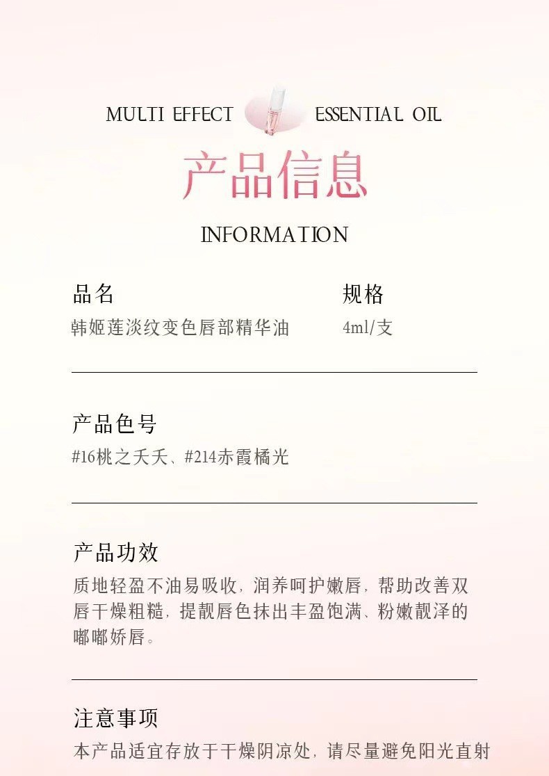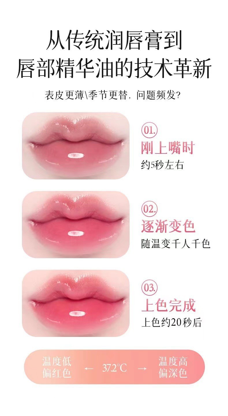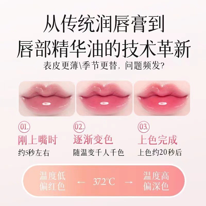 한 Jilian 색상 변경 에센스 오일 라이트 곡물 립 에센스 오일 수화 및 보습 가을 및 겨울 러프 필링 립밤 립 오일
