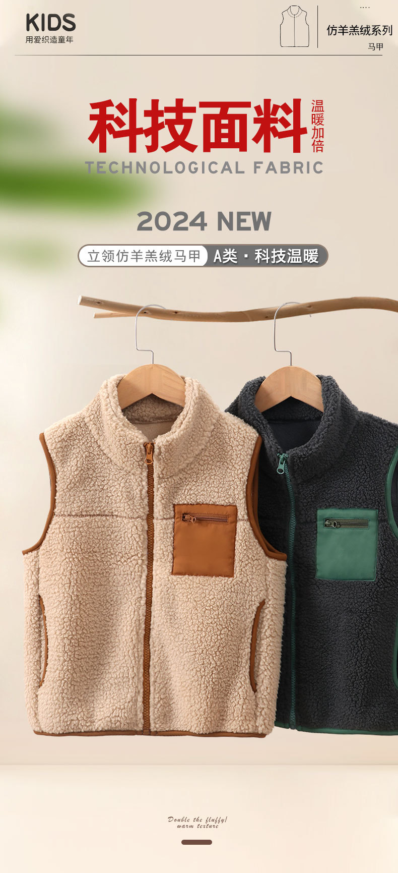 가을과 겨울 기모 두꺼운 곡물 캐시미어 입고 소년 조끼 학생 따뜻한 조끼 중년 어린이 어린이 조끼스토어 가기