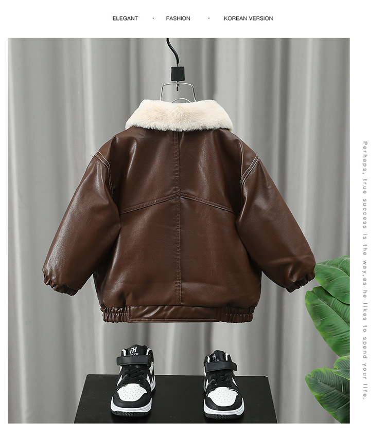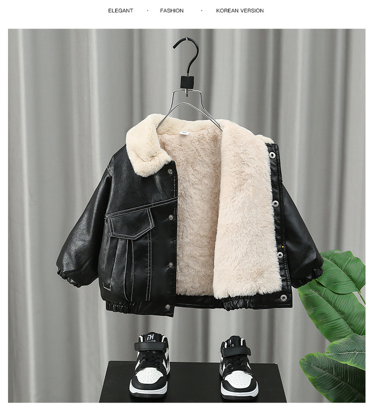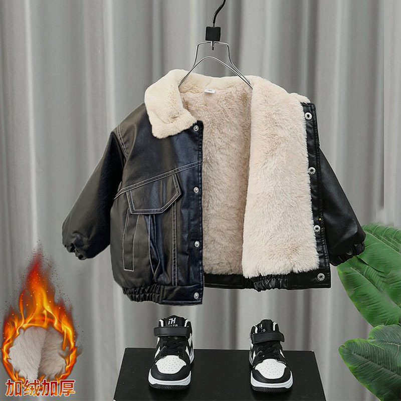 어린이 의류 소년 쿨 가죽 자켓 새로운 스타일 서양식 아기의 가을 겨울 의류 어린이 한국 스타일 기모 두꺼운 재킷 가죽 자켓