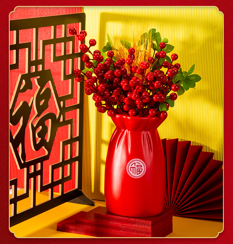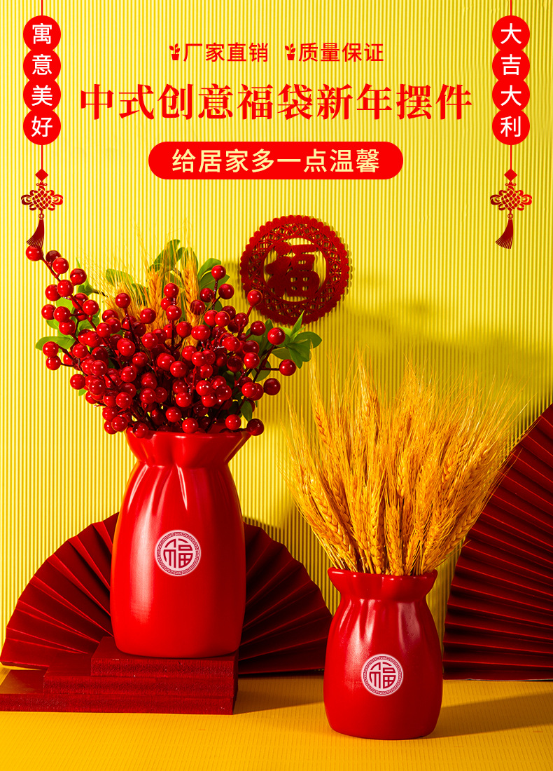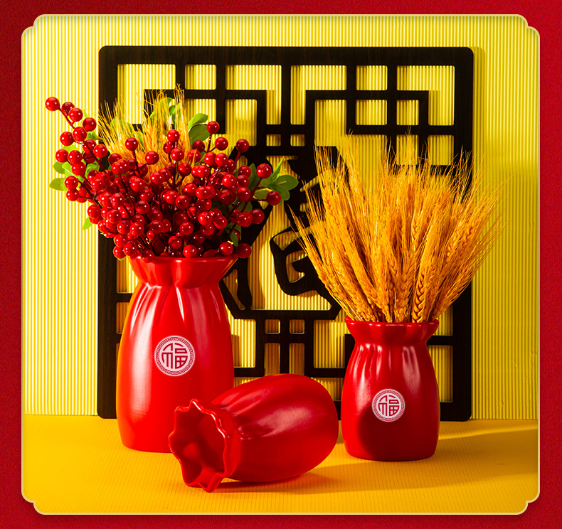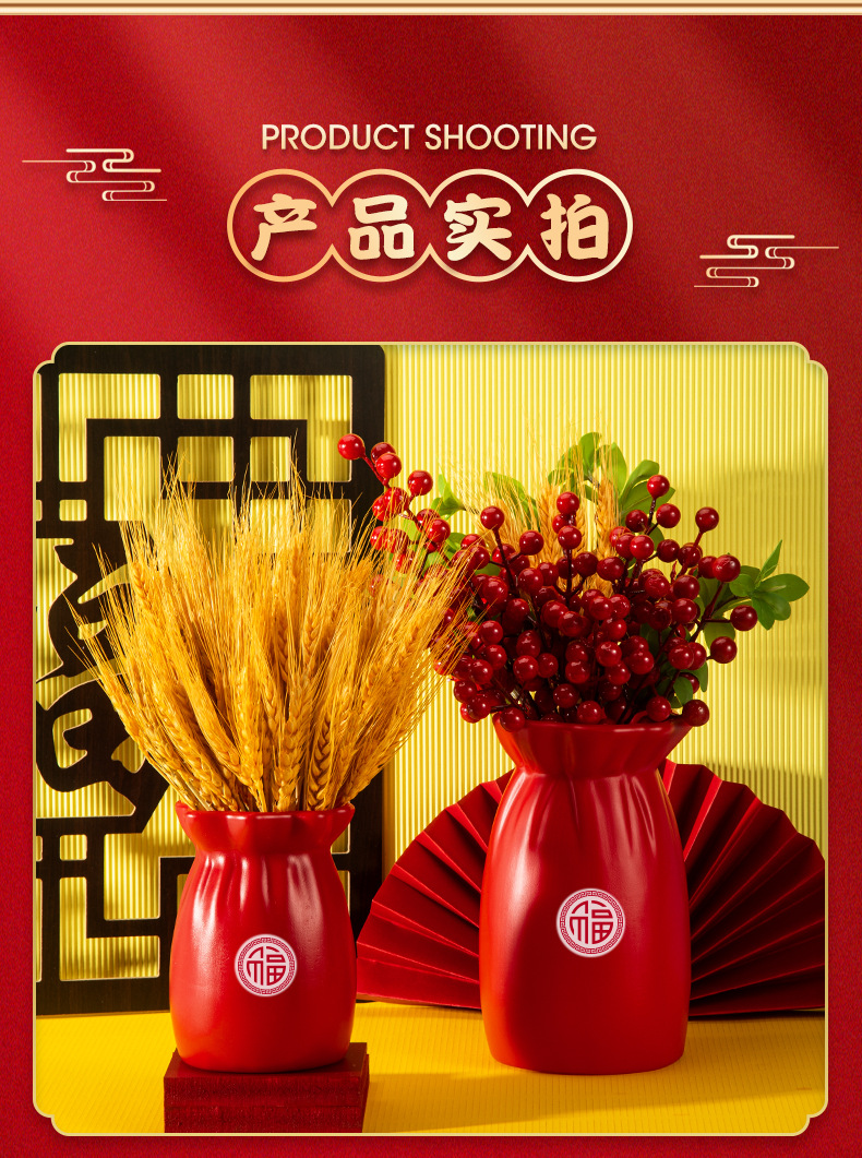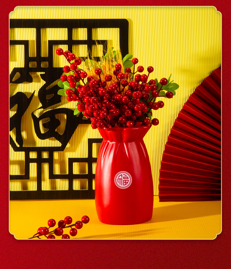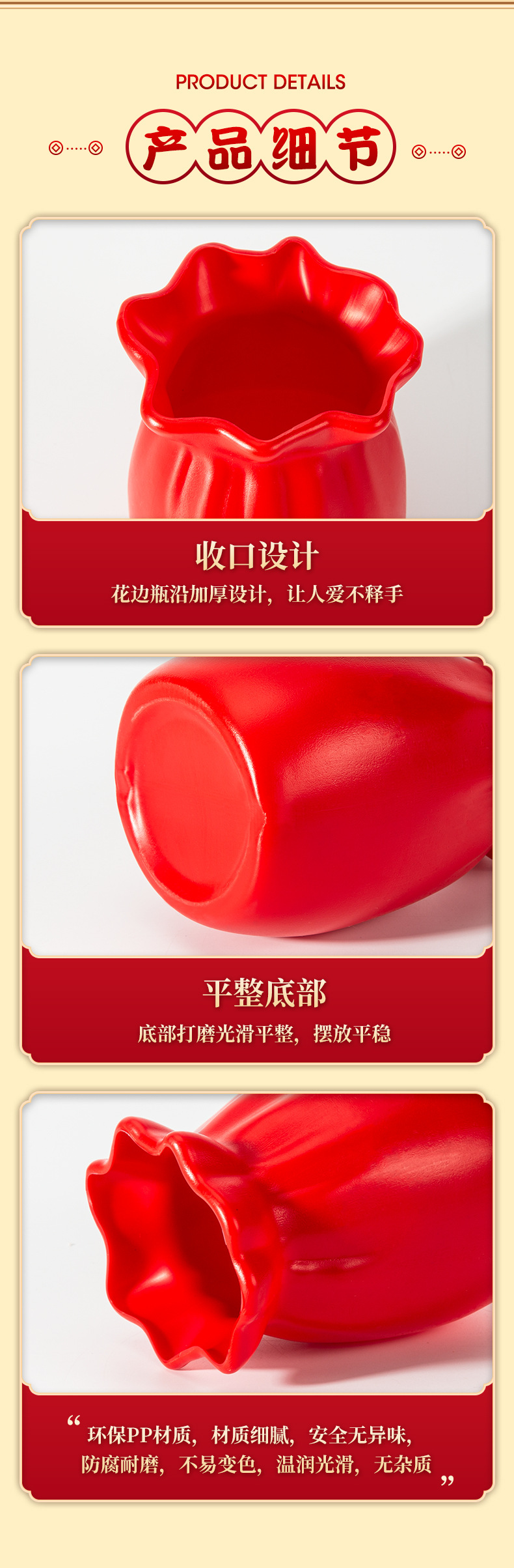 공장 도매 붉은 축제 장식 꽃병 세라믹 플라스틱 꽃병 새해 장식품 블로우 성형 원피스 성형스토어 가기