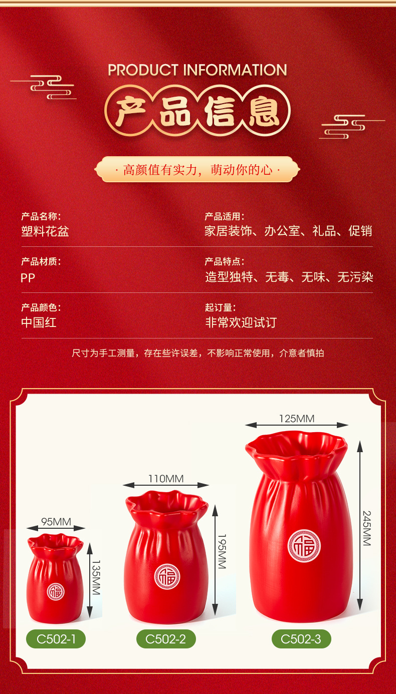공장 도매 붉은 축제 장식 꽃병 세라믹 플라스틱 꽃병 새해 장식품 블로우 성형 원피스 성형