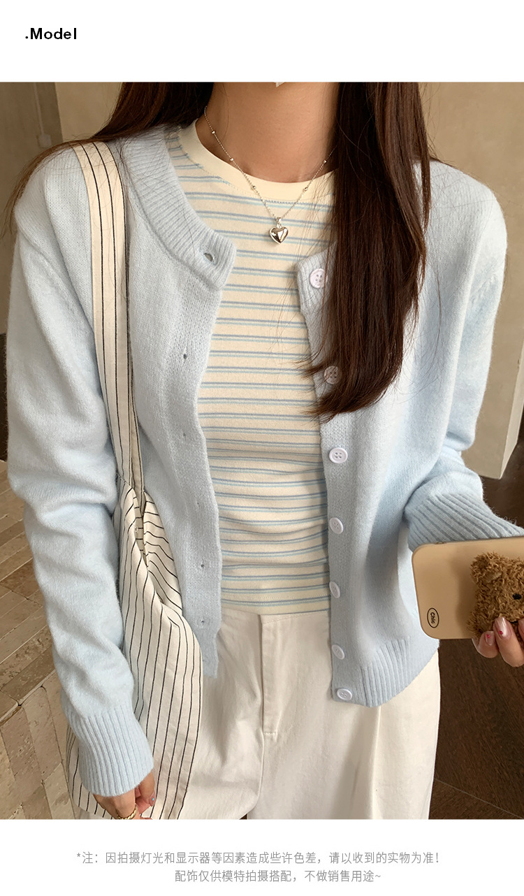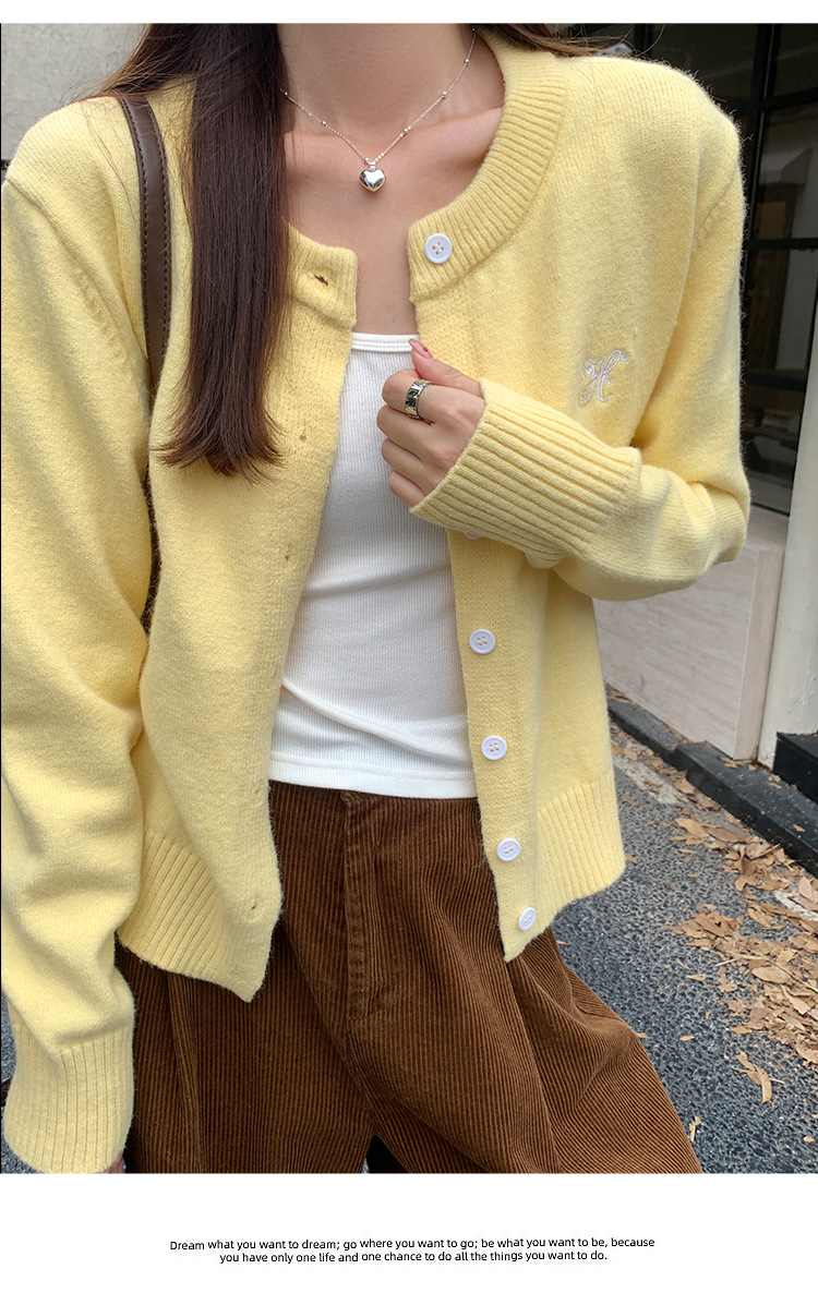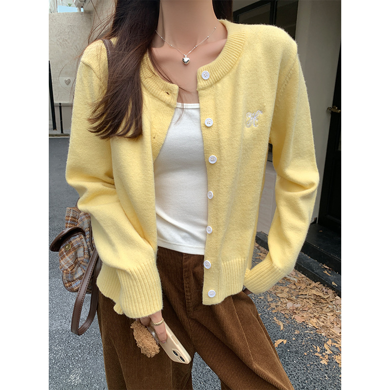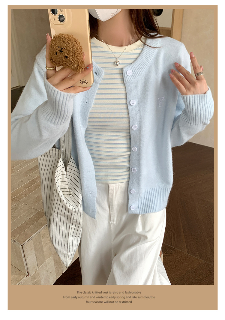 라이트 블루 스레드 둥근 목 긴 소매 니트 카디건 여성의 가을과 겨울 새로운 게으른 스타일 휴식 재킷 자수 탑스토어 가기