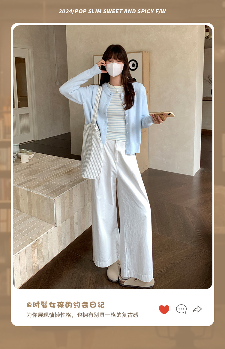라이트 블루 스레드 둥근 목 긴 소매 니트 카디건 여성의 가을과 겨울 새로운 게으른 스타일 휴식 재킷 자수 탑