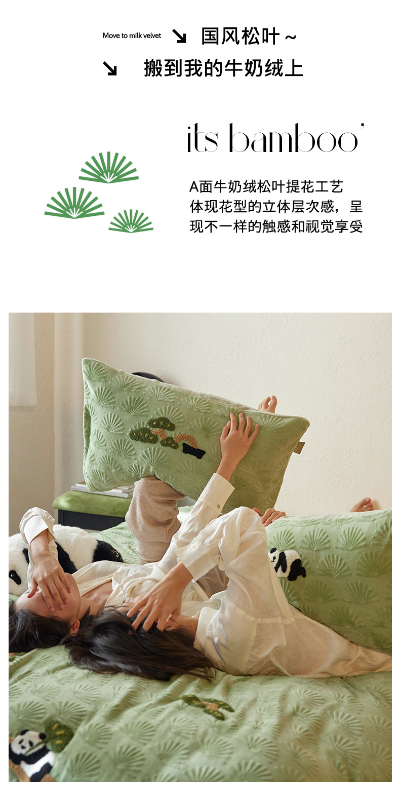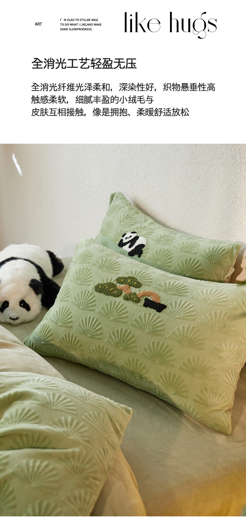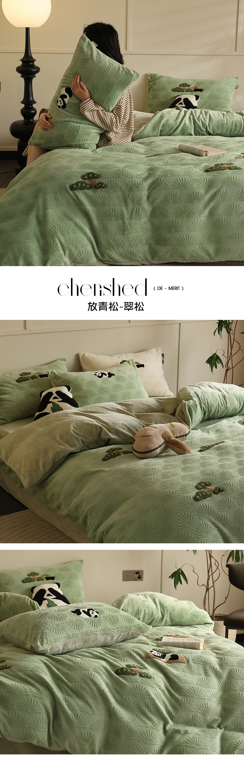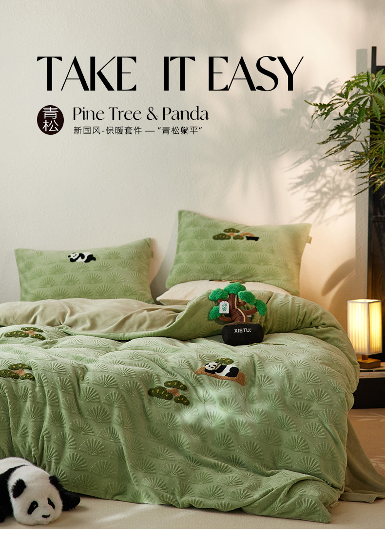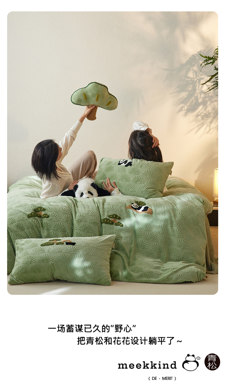 A 등급, 윈드 라이잉 플랫 팬더 스테레오 밀크 벨벳 4 피스 세트 타월 자수 양면 기모 침대 시트스토어 가기