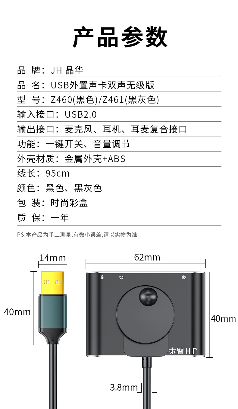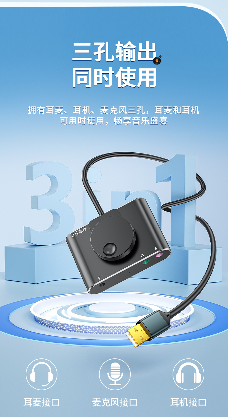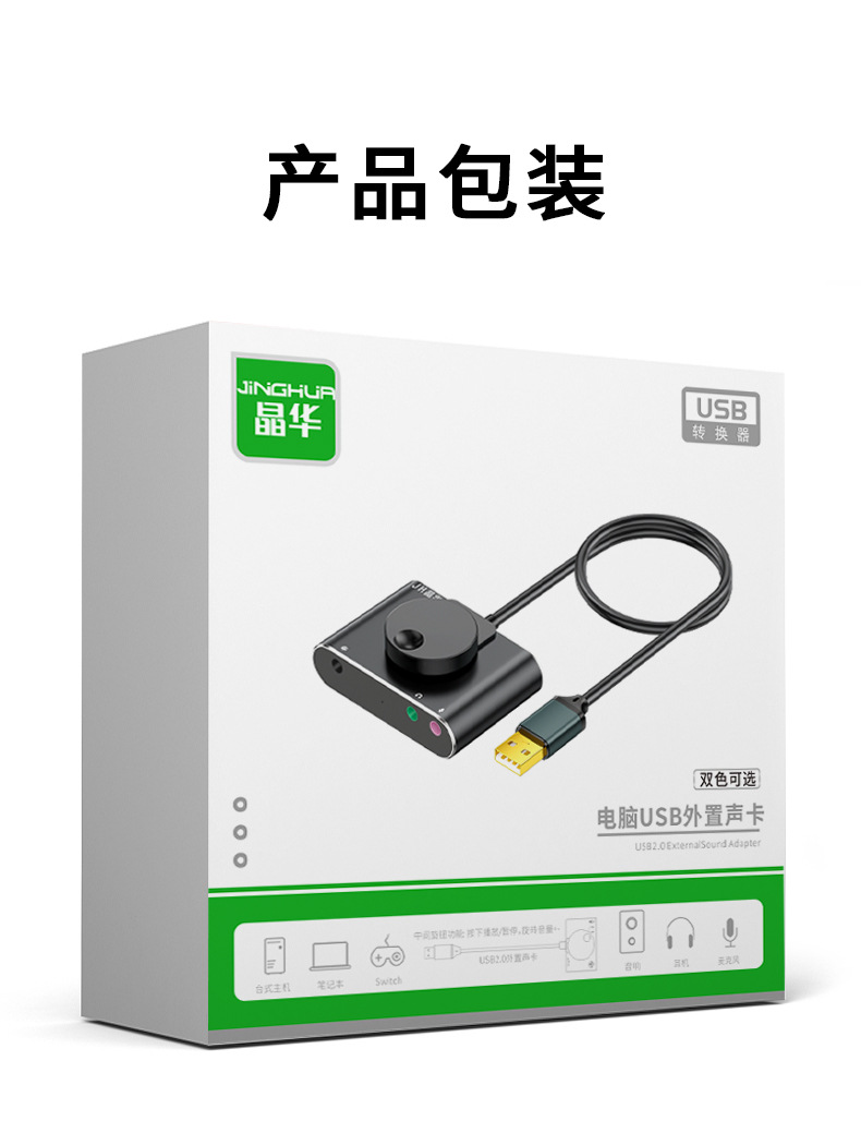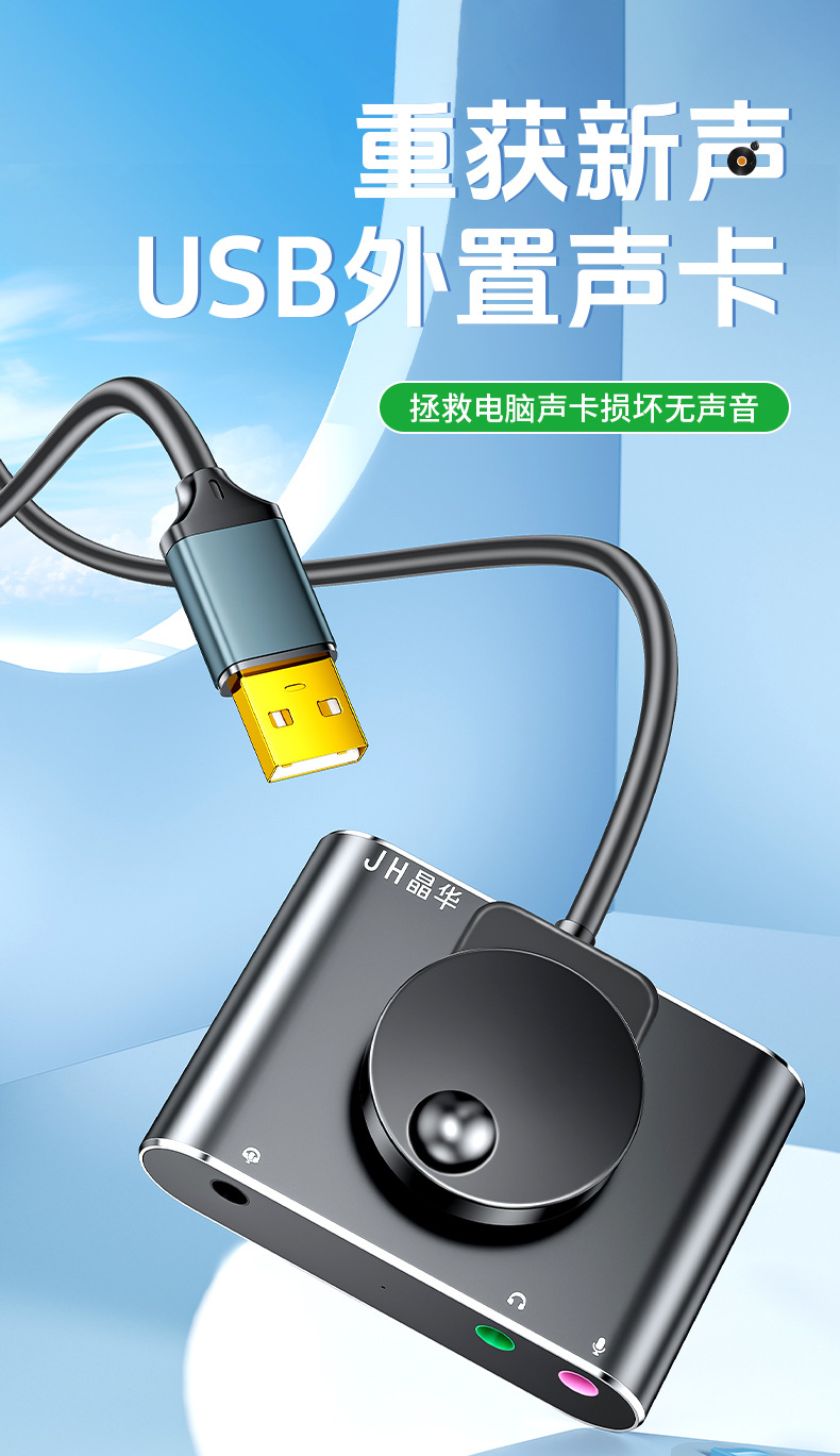 Jinghua USB 외부 사운드 카드 3.5mm 헤드셋 PS4 오디오 데스크톱 컴퓨터 노트북 드라이브 무료 오디오 컨버터스토어 가기