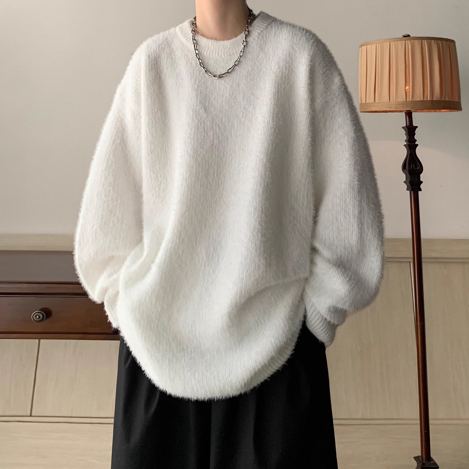남자 Mauhair 스웨터 가을과 겨울 하이 엔드 센스 두꺼운 라운드 넥 스웨터 게으른 스타일 아메리칸 루즈 재킷