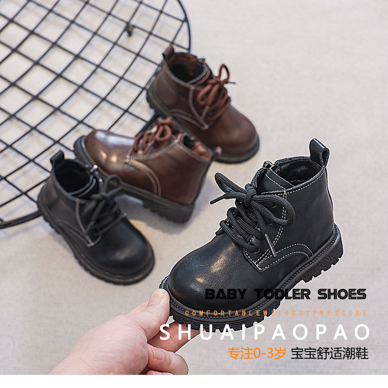 영국 스타일의 어린이 마틴 부츠 소년 브로그 부츠 소녀 가을과 겨울 기모 가죽 신발 편안한 부드러운 바닥 아기 가죽 부츠스토어 가기