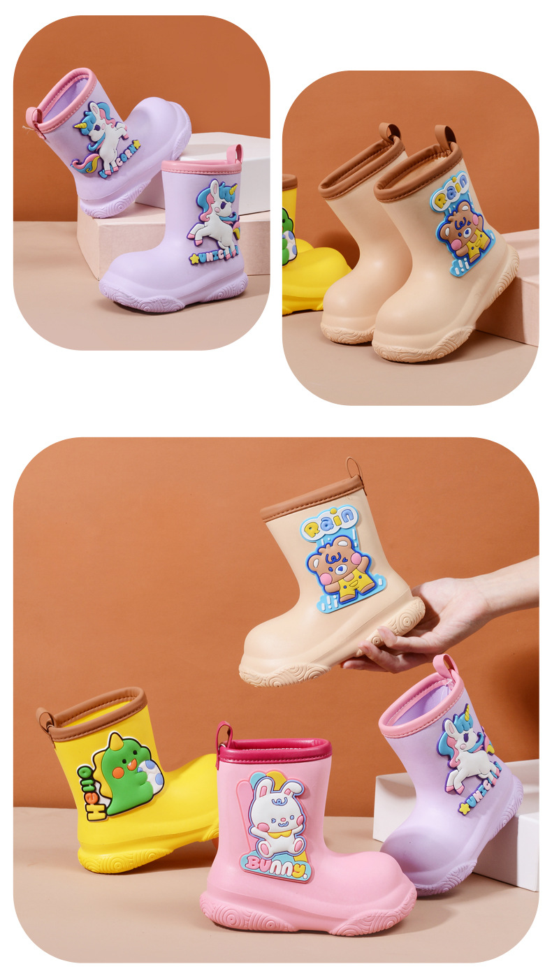 어린이 장화 소녀 3-12 세 아기 만화 EVA 외부 방수 신발 미끄럼 방지 소프트 단독 중간 배럴 소년 장화스토어 가기