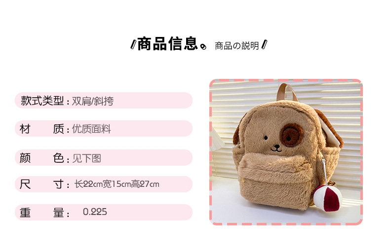 인즈 스타일 만화 다크 서클 강아지 배낭 귀여운 봉제 학생 배낭 창조적 인 부드러운 소녀 어린이 가방 트렌디