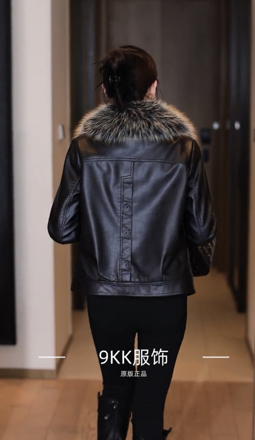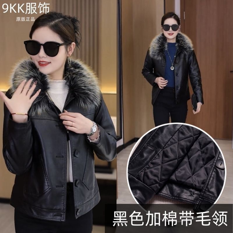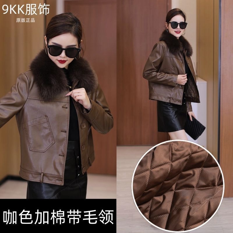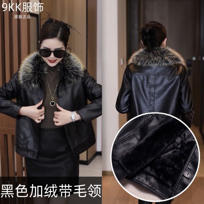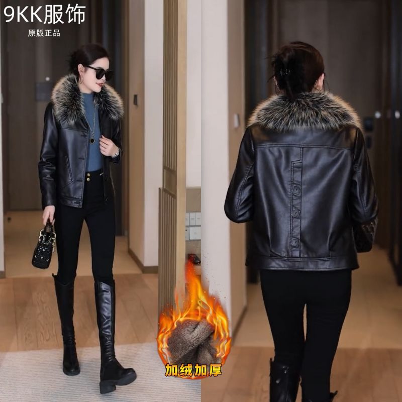 기모 두꺼운 증오 가죽 여성의 가을 및 겨울 새로운 스타일 모피 칼라와 함께 올 매치 짧은 가죽 자켓스토어 가기