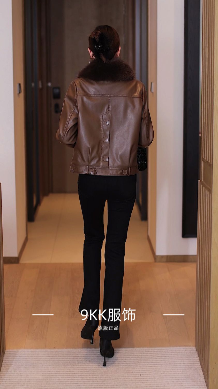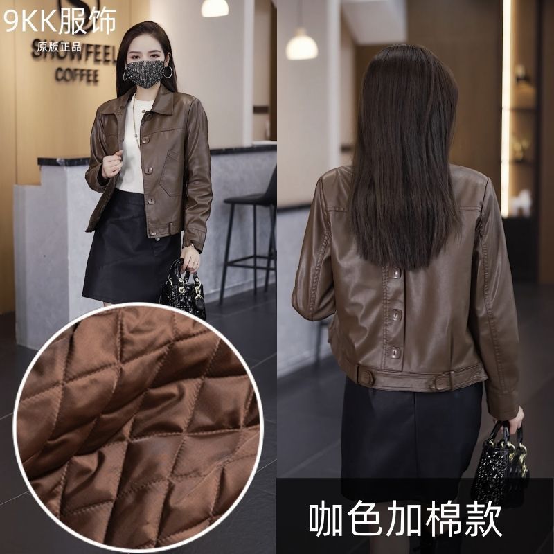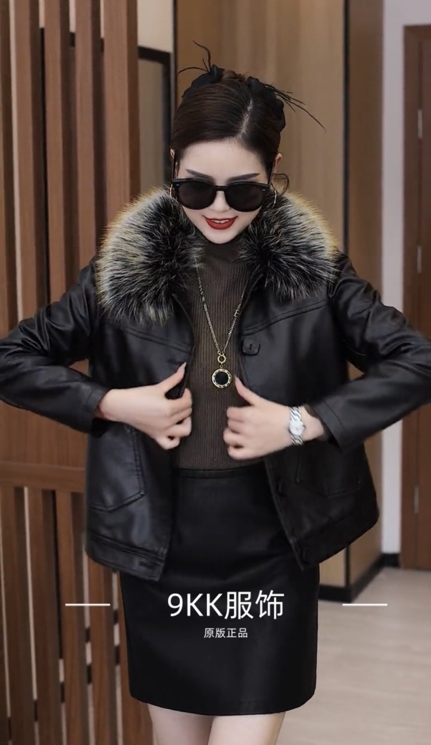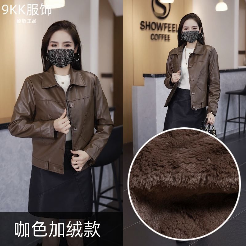 기모 두꺼운 증오 가죽 여성의 가을 및 겨울 새로운 스타일 모피 칼라와 함께 올 매치 짧은 가죽 자켓스토어 가기
