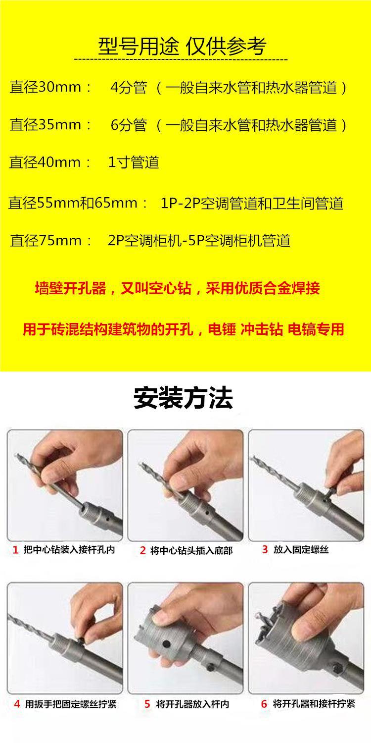 타악기 드릴 전기 망치 벽 구멍 오프너 콘크리트 시멘트 리머 커넥팅로드 에어컨 구멍 펀처 벽 드릴 비트스토어 가기
