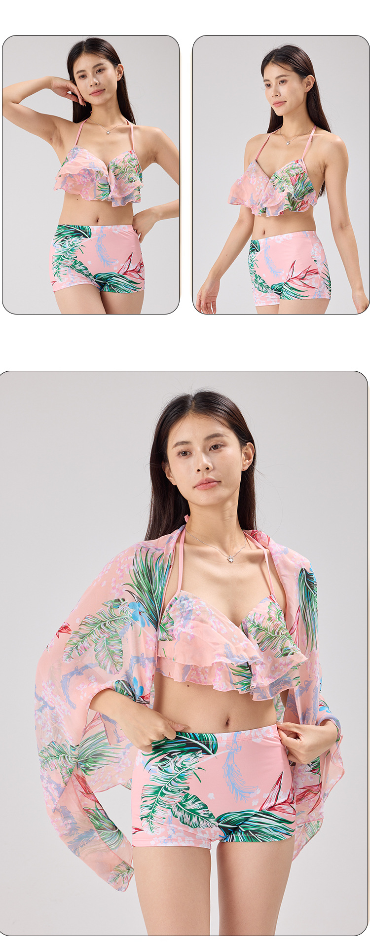 수영복 여성 여름 쪼개지는 비키니 목도리 3 피스 세트 보수적 슬림 요정 배꼽이 뜨거운 봄 휴가 학생 수영 세트스토어 가기