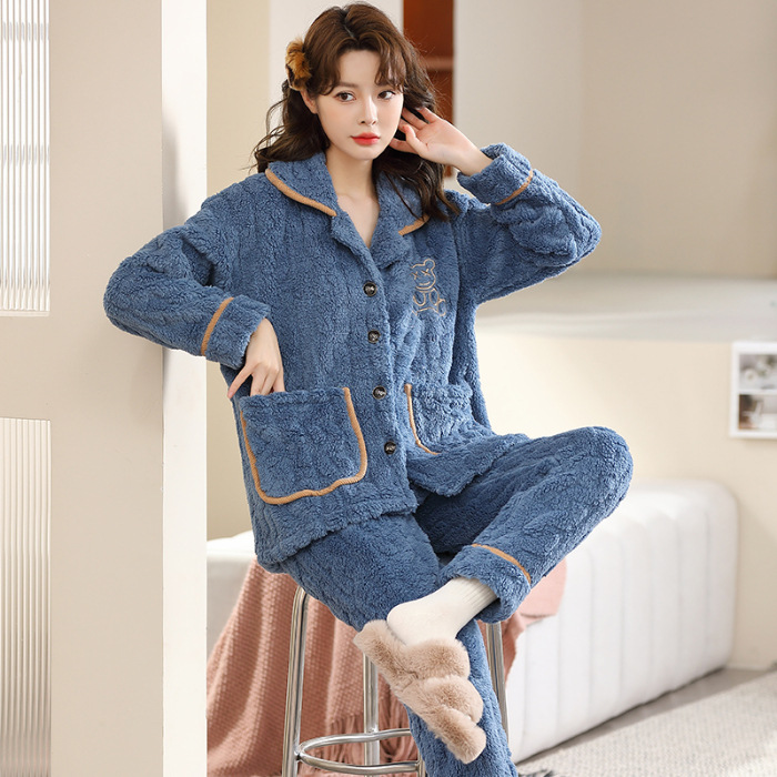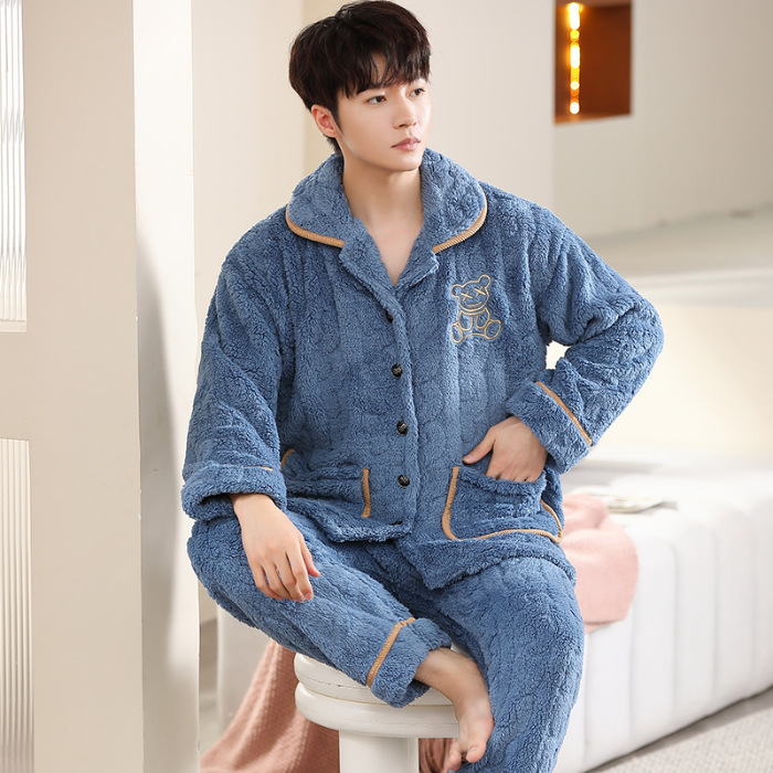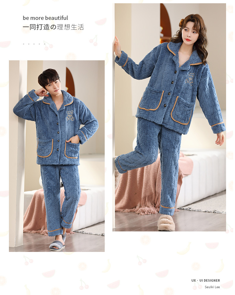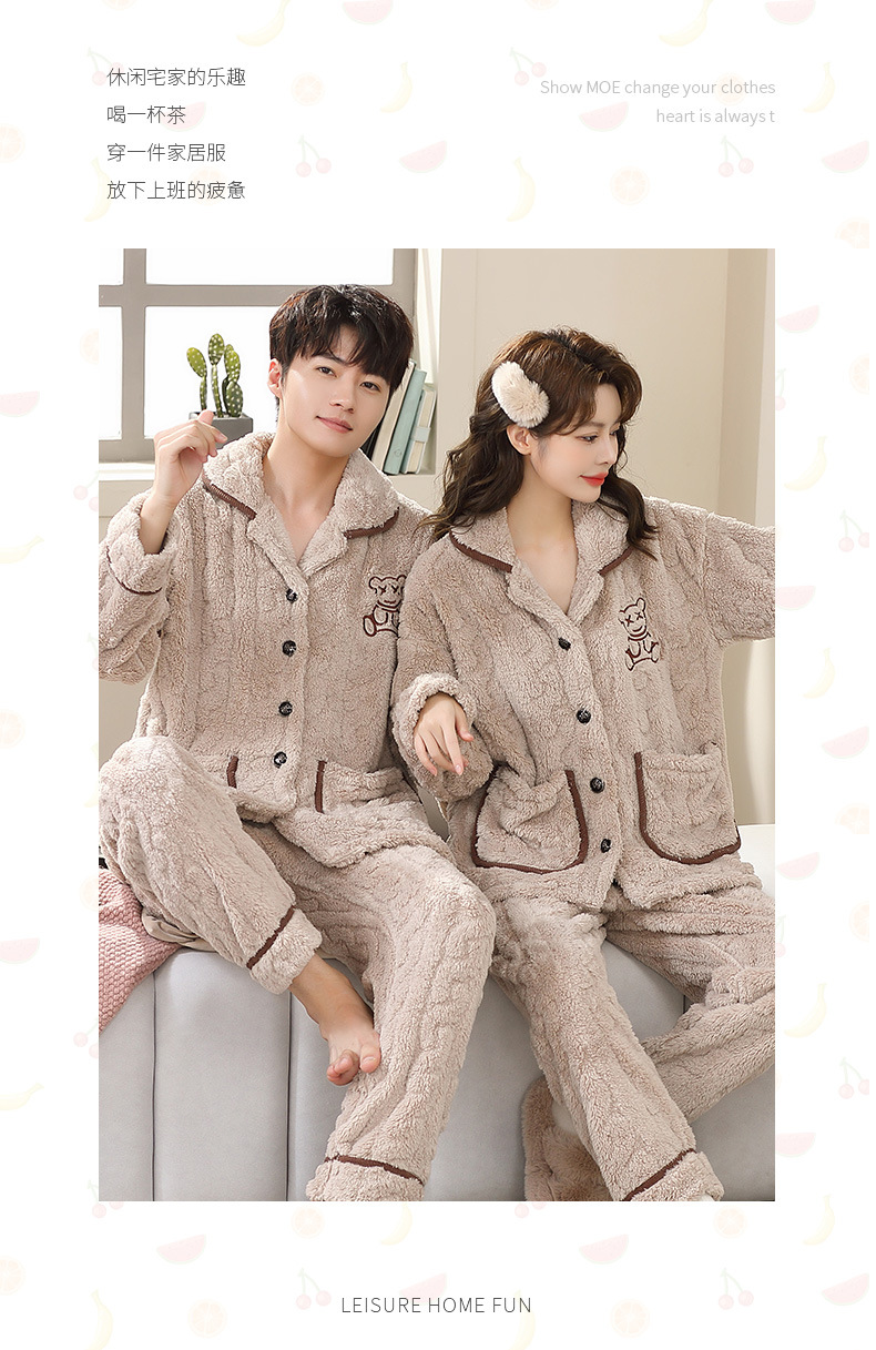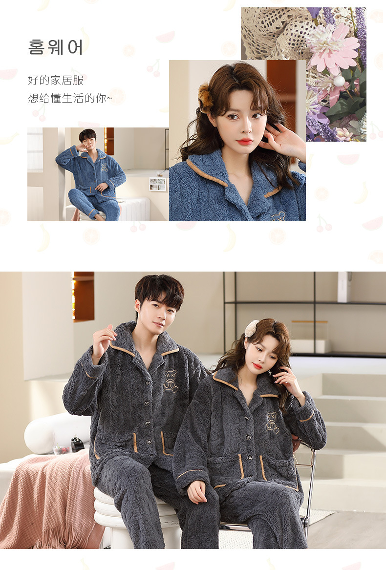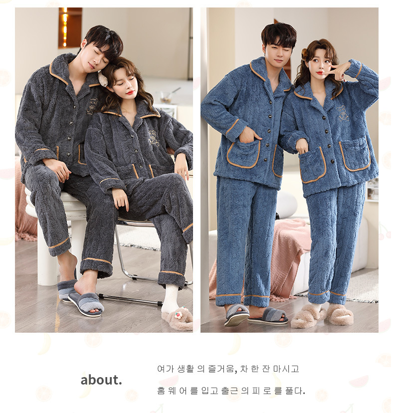커플 잠옷 여성의 가을과 겨울 새로운 플란넬 기모 두꺼운 엄마와 아빠 카디건 산호 양털 남자 홈 옷