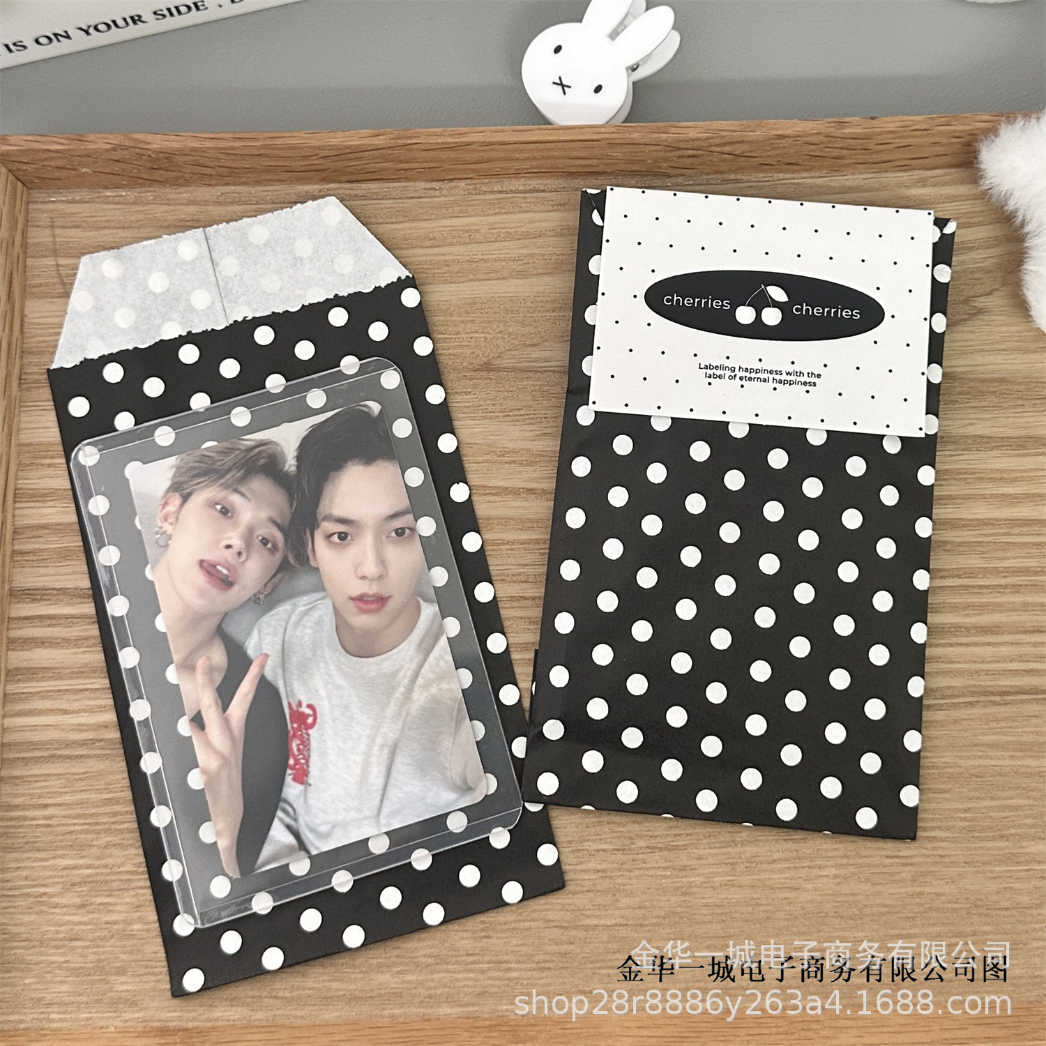블로거의 같은 스타일 검은색 물방울 무늬 크래프트 종이 봉투 저렴한 선물 카드 포장 재료 크리에이티브 자체 밀봉 종이 봉투