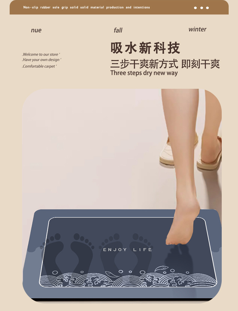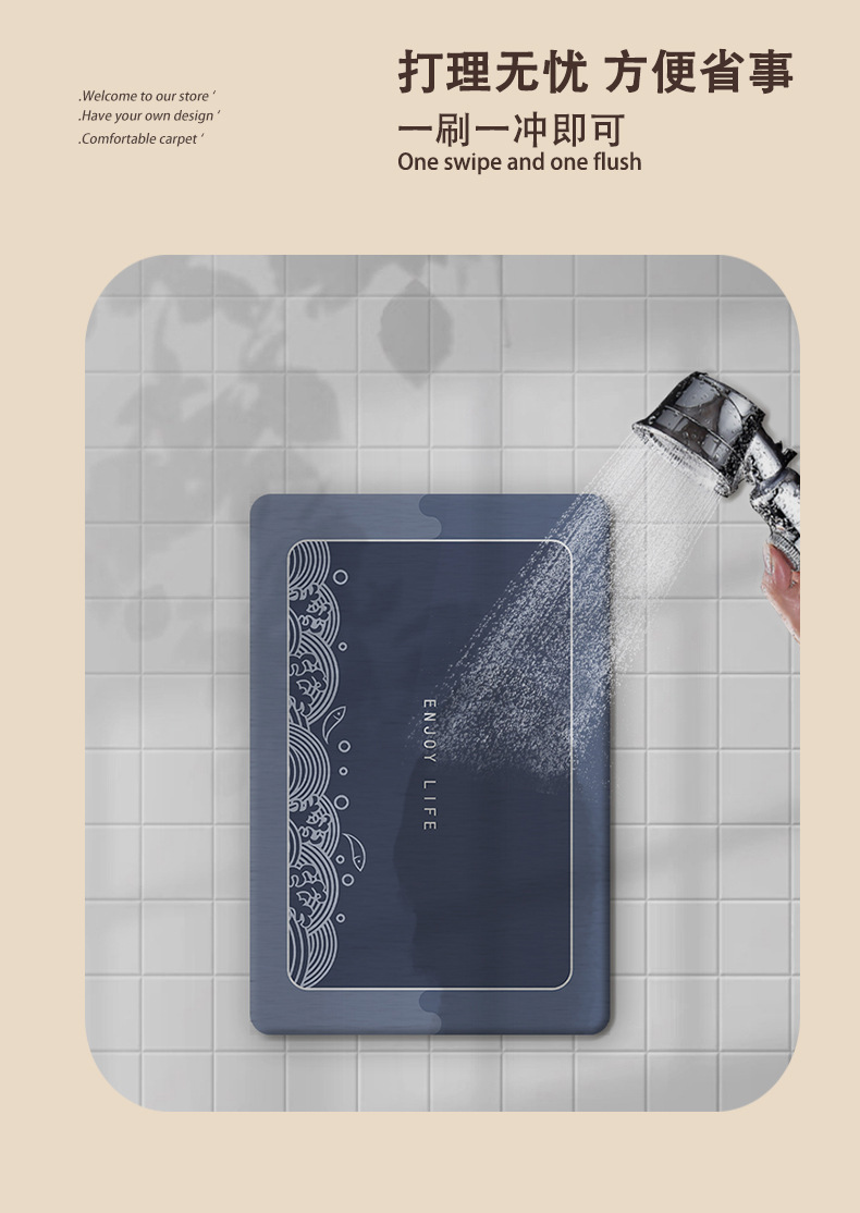 새로운 중국 스타일 규조토 진흙 바닥 매트, 속건성, 미끄럼 방지, 욕실 흡수성 발 매트, 욕실 가정용 얼룩 방지 및 관리가 쉬운 도어 매트