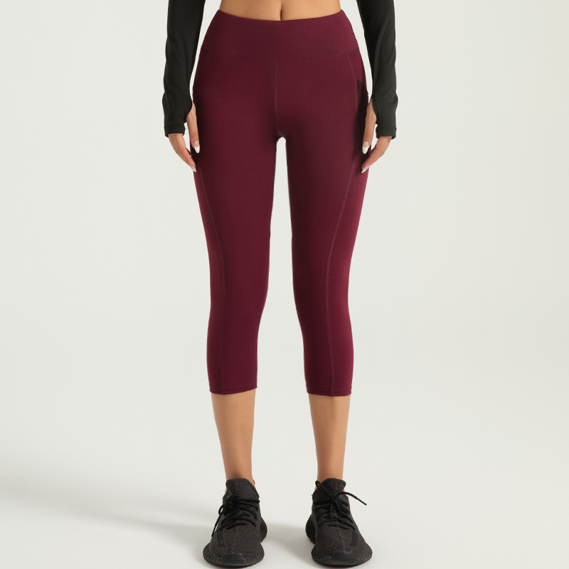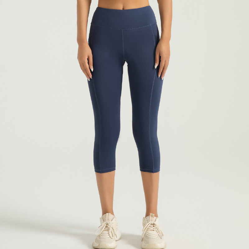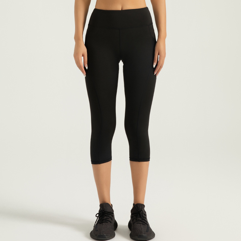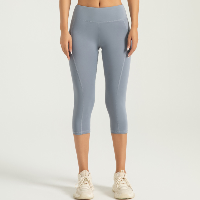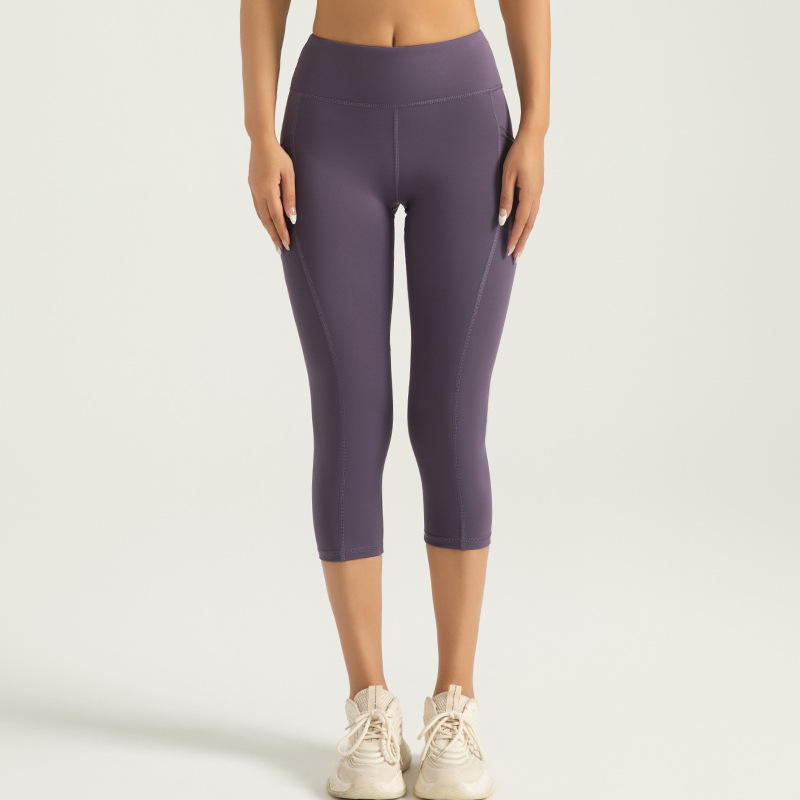 Jeyitang 사이드 포켓 자른 요가 바지 여성 높은 허리 체육관 복숭아 엉덩이 피트니스 바지 스포츠 타이트스토어 가기
